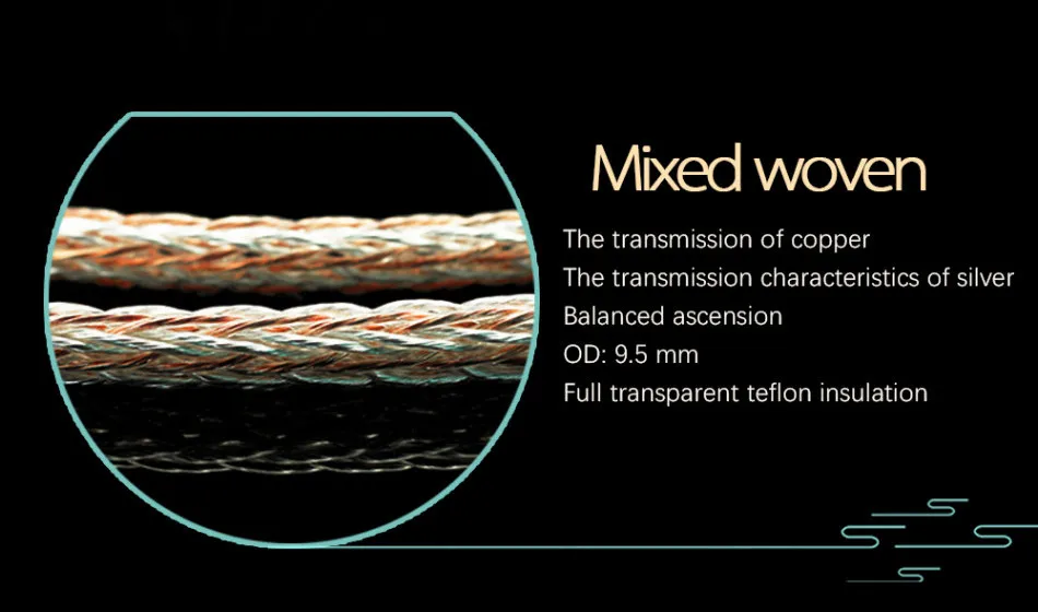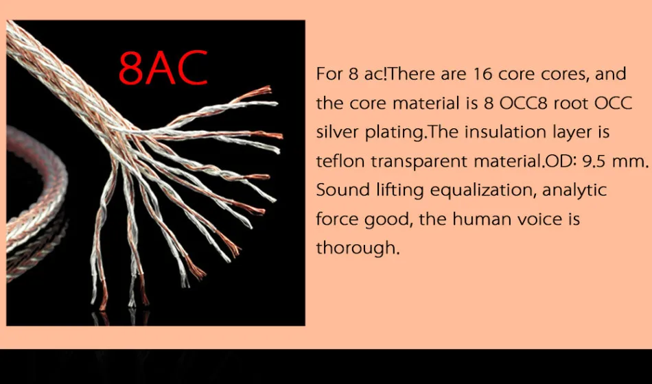 5.Estructura: 8 cables de plata + 8 cables de cobre 16 núcleos Trenzado estéreo
