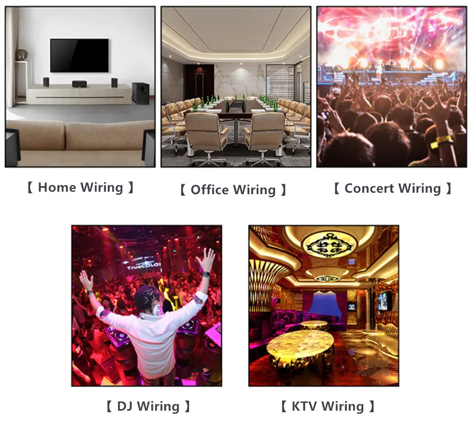 9.Aplicaciones: amplificador de potencia, altavoz, sistema de megafonía, sala de reuniones KTV doméstica, equipo de audio para automóvil, equipo de audio, cableado de departamentos de cine/ingeniería.