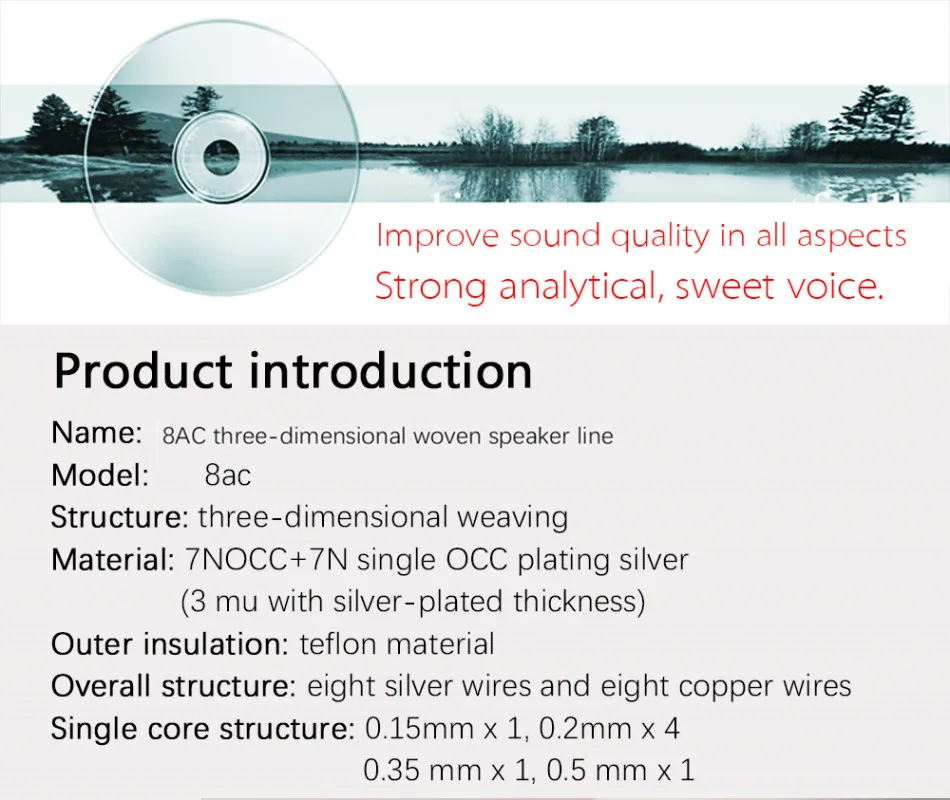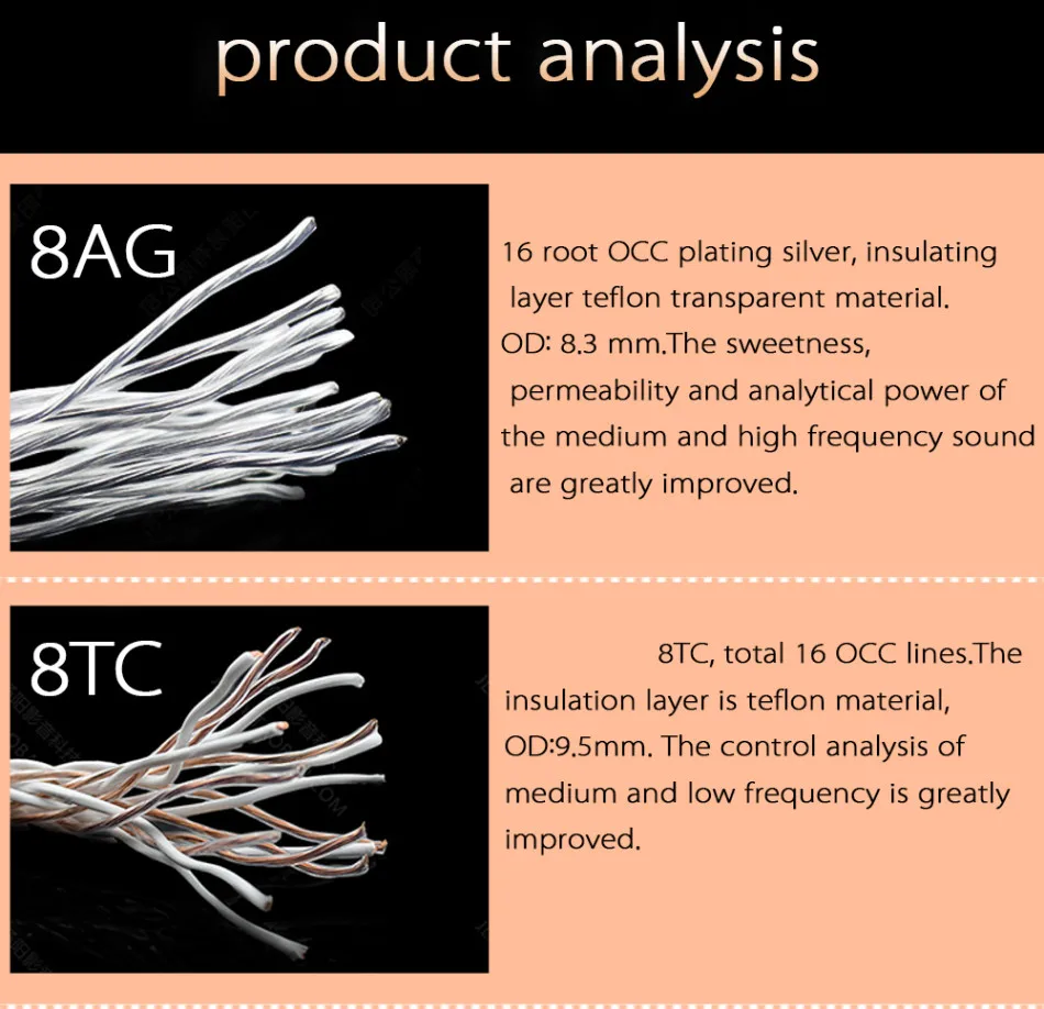 1.Nombre: Cable de altavoz Hifi Audio 8AC 7N OCC y cable a granel plateado Cable para sistema de sonido de cine en casa