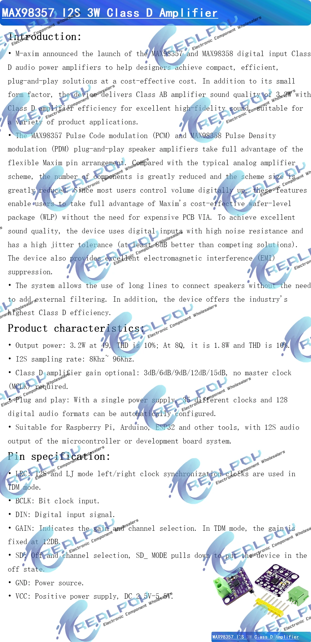 Comprar AMPLIFICADOR MAX98357 I2S 3W Clase D interfaz de ruptura módulo decodificador Dac placa de Audio sin filtro para Raspberry Pi Esp32