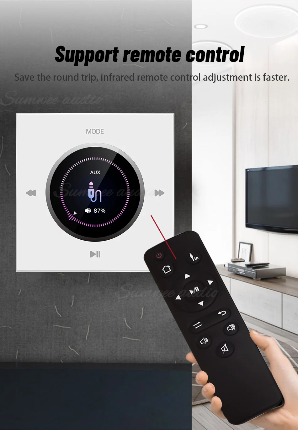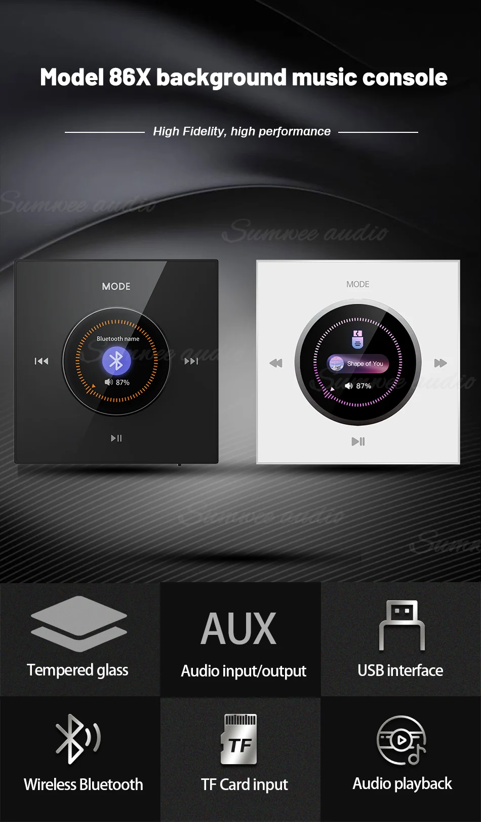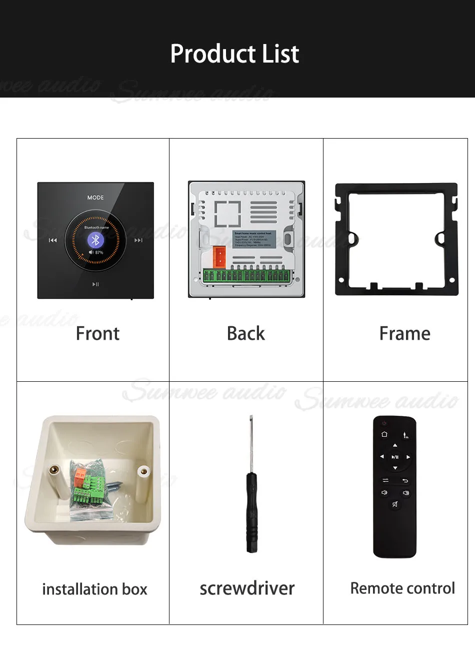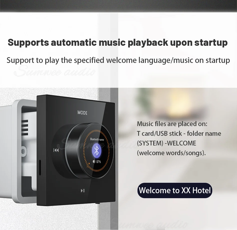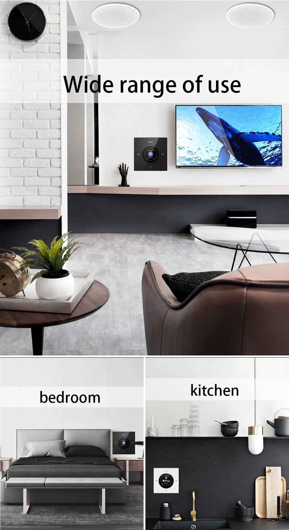 Bluetooth Wall Amplifier Mini Wall Mounted Key Touch Music Player Built In FM Radio Smart Home Audio System with ceiling speaker