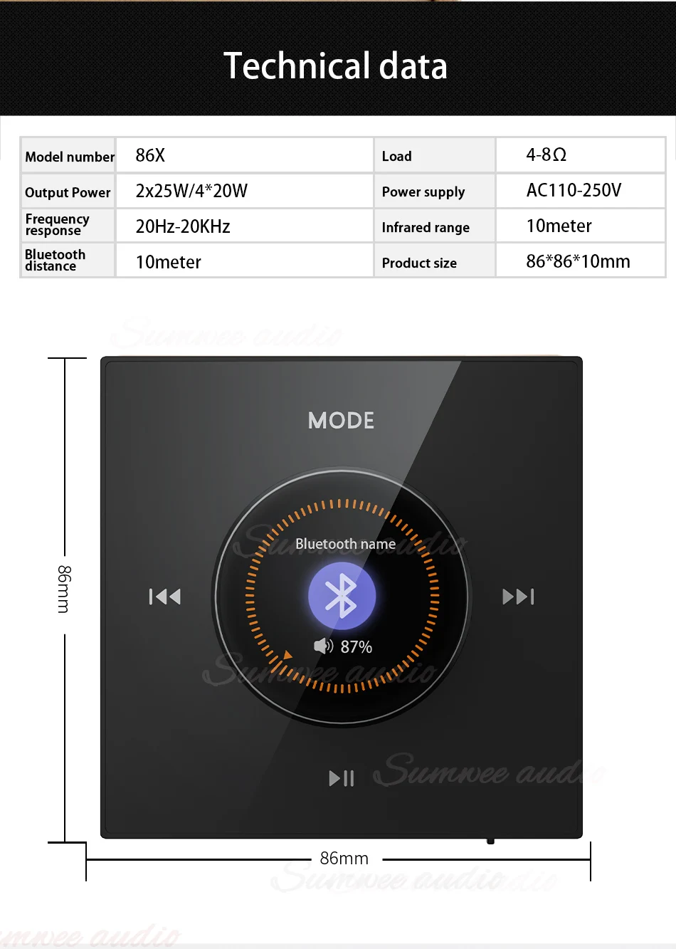 ● Installation: 86 standard wire box, front wall
