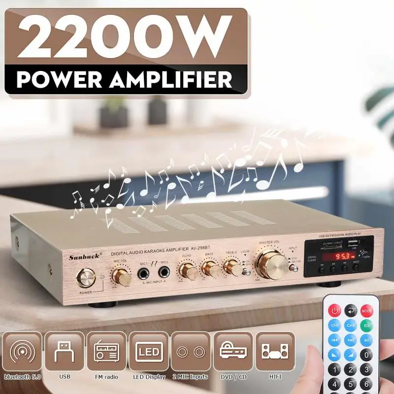 110/220V 2000W Bluetooth 5,0 AMPLIFICADOR DE POTENCIA DE Audio amplificadores de cine en casa amplificador de Audio soporte FM USB con Control remoto