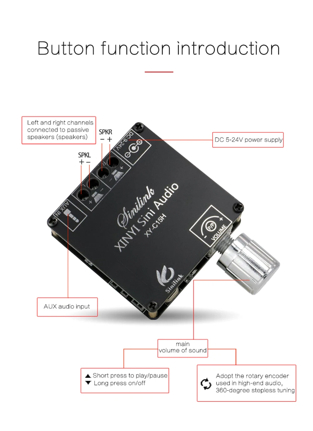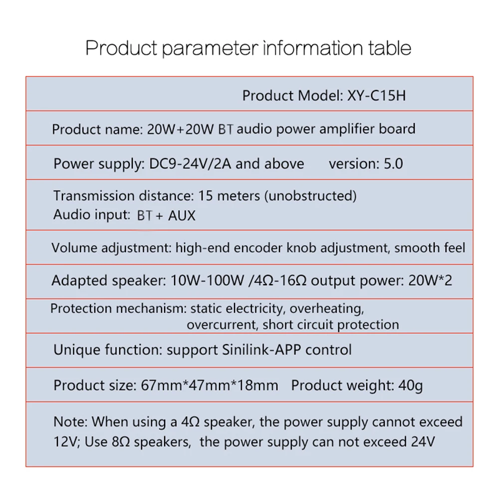 Funciona muy bien. Utilízalo con 2 altavoces de 8 ohmios por canal en paralelo con 12 V, es más fuerte de lo que necesitaré sin necesidad de recortar. Cambiar entre la entrada auxiliar y BT es un poco inconsistente, pero no realmente es un gran problema, ya que probablemente nunca lo usaré con BT. El listado no dice qué amplificador de chip está usando, pero sospezco que es un TPA3110.