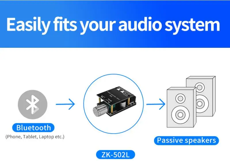 Comprar Amplificador DE POTENCIA de Audio Digital inalámbrico, placa estéreo, Mini Bluetooth 5,0, 50Wx2, DC 9-24V, ZK-502L/502MT