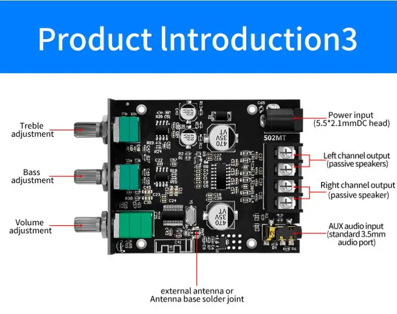 1. El tono alto y bajo se puede ajustar de forma independiente, salida estéreo de dos canales.
