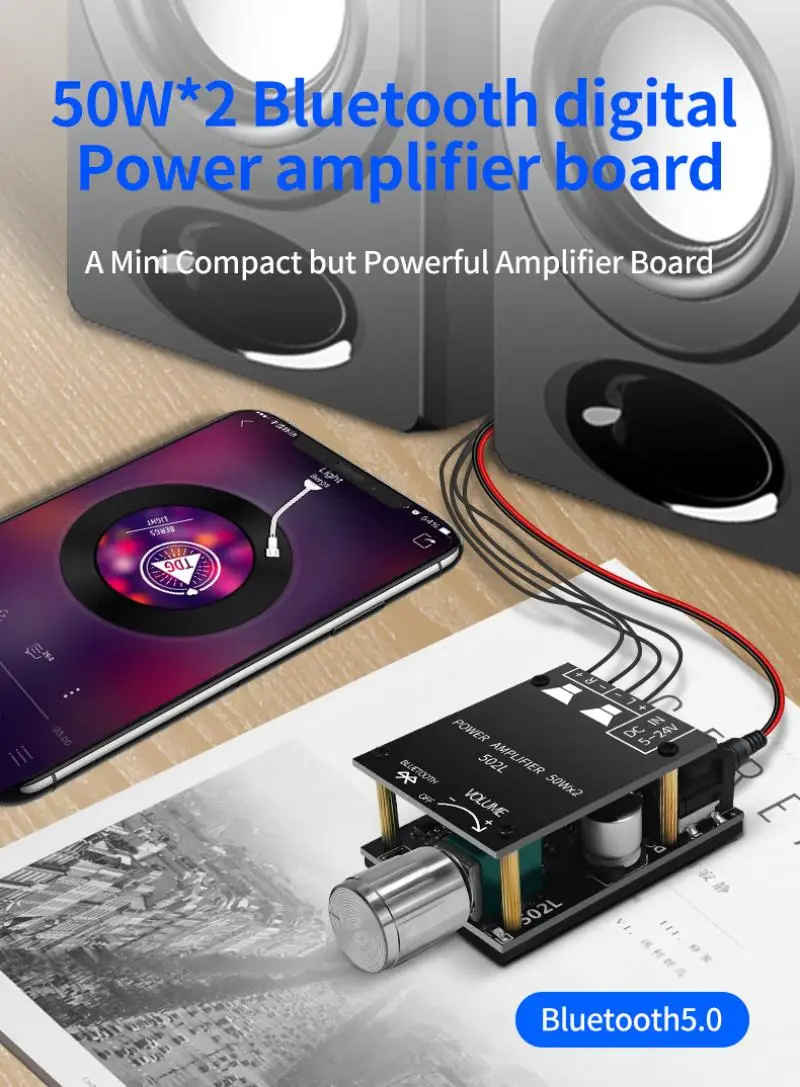 Nombre del producto: Placa de amplificador de potencia digital Bluetooth versión mini 2X50W