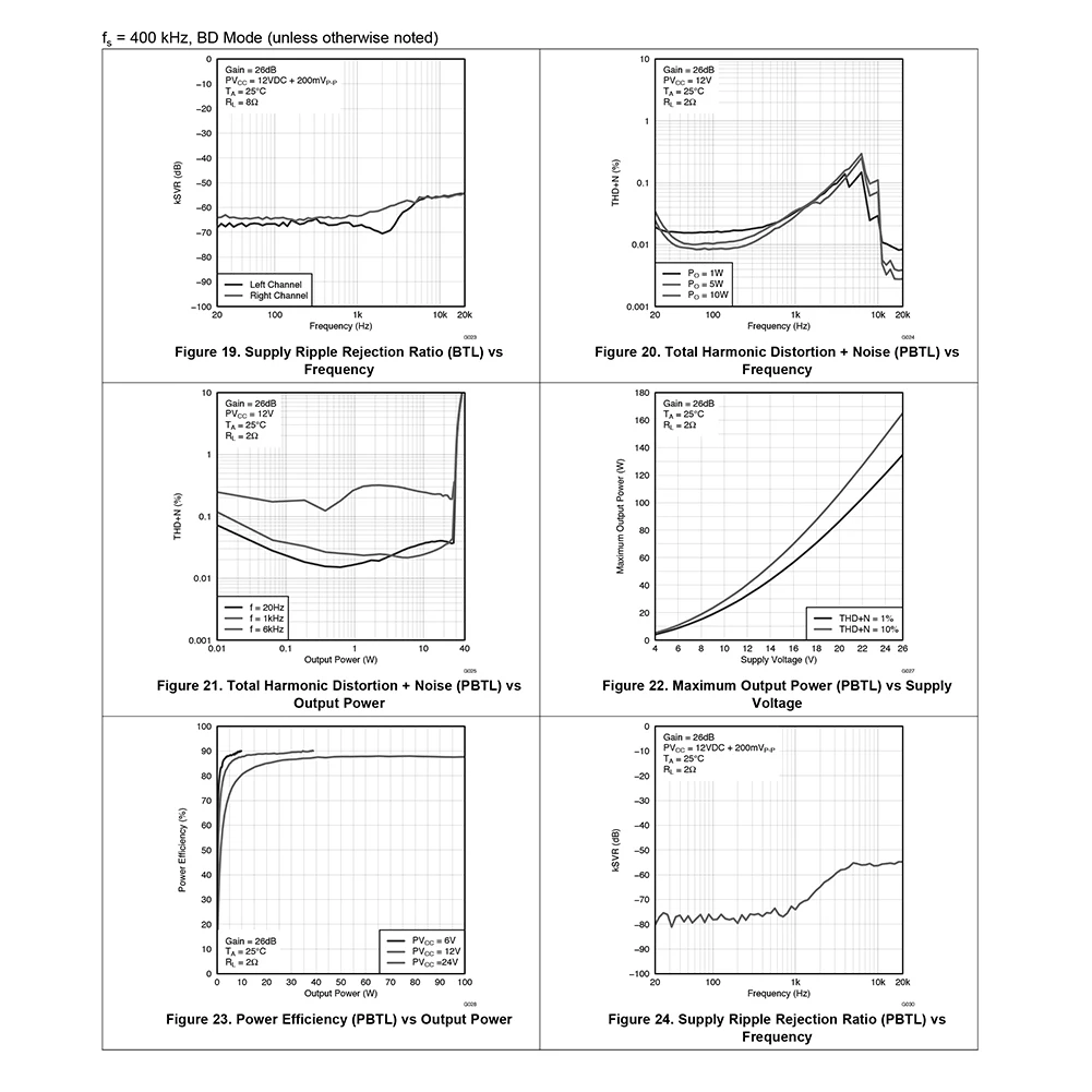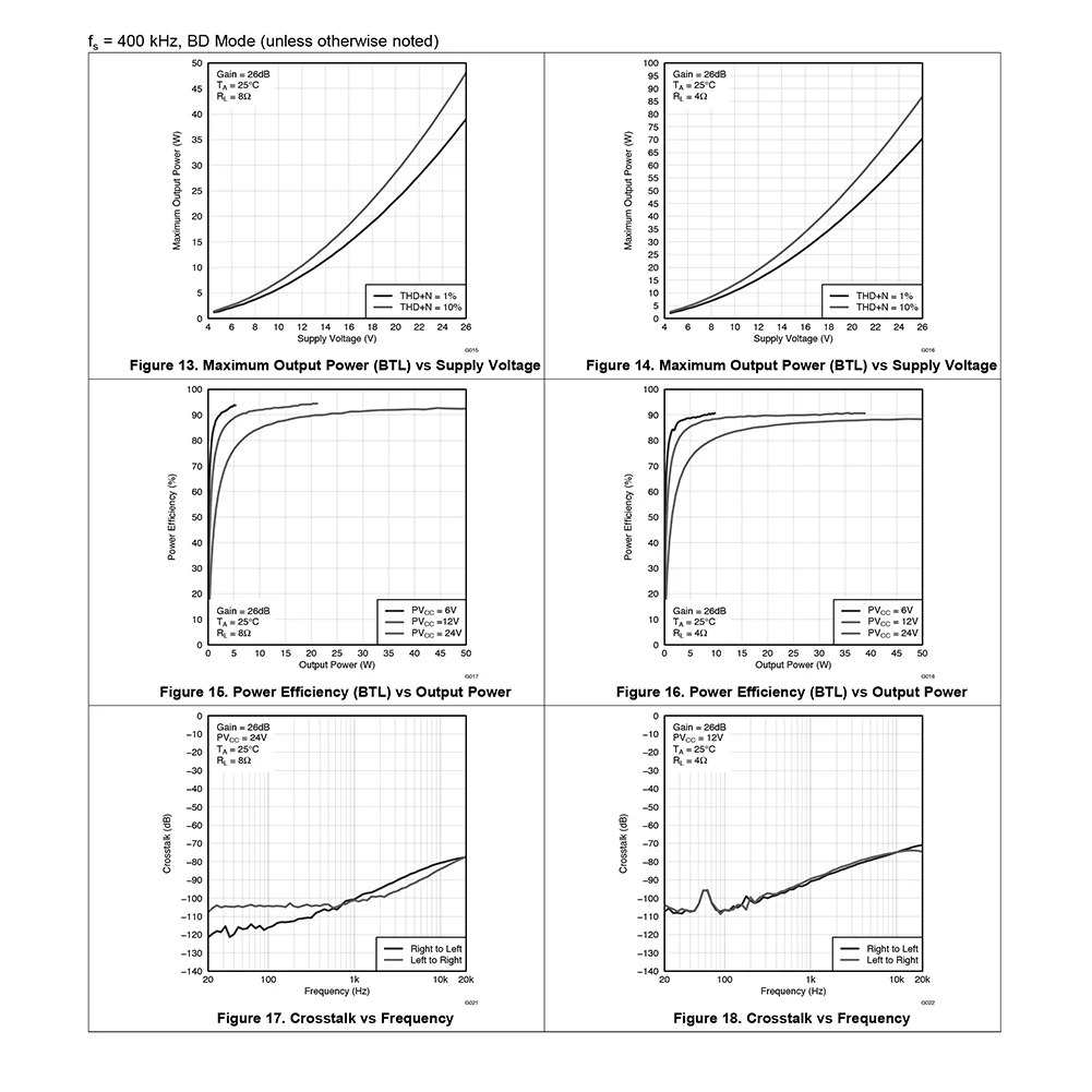 TPA3118 2x45W Audio Power Amplifier 3.5mm Stereo 12V 24V Audio Power Digital Amplifier Board Bluetooth-compatible AMP Module PCB Board Integrated Circuits Feature: 1. PCB board thickened copper foil: PCB board thickened copper foil, effective heat dissipation, no need to add heat sink to the power amplifier. 2. Wide voltage input: 12V-28 wide voltage input 3. Provide high power output: Provide a high power output of up to 45W, which can push 5W-100 speakers, speakers, etc 4. Supports audio cable connection: Support audio cable connection and Bluetooth-compatible 5.0 connection 5. The Bluetooth-compatible receiver has its own control buttons: which can be used to control the volume, play, pause, up and down, switch on and off, etc. when connecting via Bluetooth-compatible. Specification: Origin: Mainland China Type: Drive IC Power amplifier chip parameters: Product name: Class D 45W Bluetooth-compatible power amplifier board Product color: black Power interface: KF301 terminal block Input voltage: DC 12V-28V Input current: above 3A Power amplifier chip: TPA3118 Output power: 4 Ohms 2x45W/8 Ohms 2x30W SNR: 102Db THD+N: 0.1% Input interface: 3.5mm stereo input/Bluetooth-compatible 5.0 wireless connection (The function buttons are only available when using Bluetooth-compatible connection. The buttons are not available when using 3.5mm audio cable connection. Bluetooth-compatible connection is not available when using 3.5mm audio cable. If you want to use Bluetooth-compatible connection, disconnect the 3.5mm audio cable of the amplifier Output interface: KF301 5.0mm terminal block Product size: 71mm * 45mm/2.7*1.77in Package size: 150mm * 100mm/5.9*3.9in Product weight: 39g Bluetooth-compatible parameters: Bluetooth-compatible version: V5.0 Signal to noise ratio: 90DB THD+N:-70DB Crosstalk: - 86db DNR: 91db Transmission protocol: A2DP/AVCTP/AVDTP/HFP Transmission distance: about 10m (the shorter the distance, the better the stability) Key control: single press on/up/down, long press off volume/up/down. Note: 1 x Power Amplifier Board ![]() ![]() ![]() ![]() ![]() ![]() ![]() ![]() ![]() ![]() ![]() ![]() ![]() ![]() ![]() ![]() ![]() ![]() ![]() |