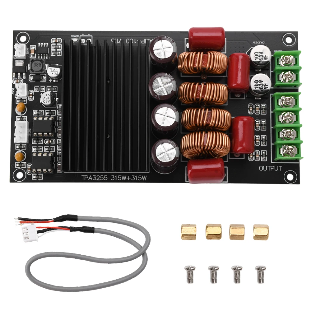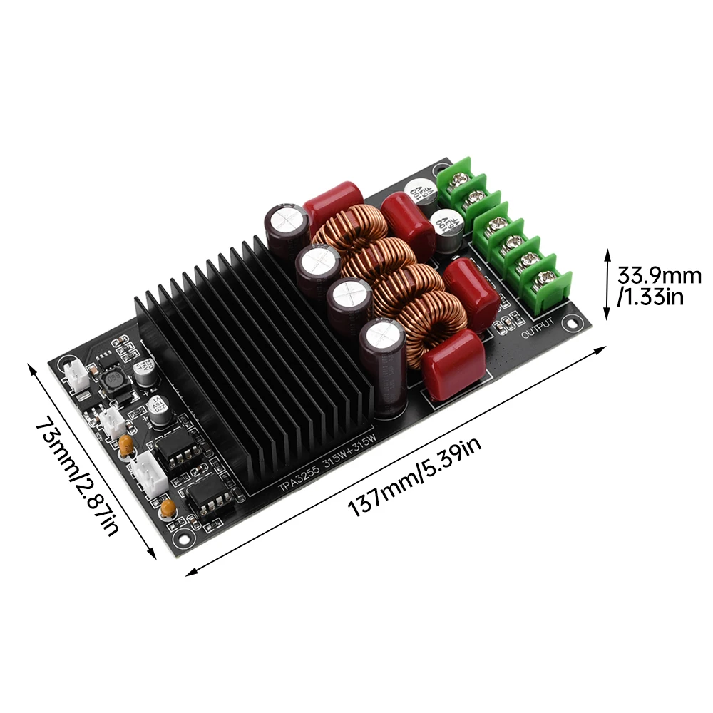 Este producto adopta un excelente diseño de circuito y componentes de alta calidad, lo que garantiza su rendimiento y funcionamiento estable a DC 52V. También pasó la prueba de alto voltaje de 60V en pruebas de laboratorio. Para garantizar la calidad del sonido, TPA3255 adopta una estructura de entrada diferencial, y el amplificador operacional adopta un amplificador operacional TL072 con entrada de efecto de campo. La calidad del sonido es cálida y la entrada utiliza condensadores de tantalio HIFI, que son delicados y naturales. El filtro principal está hecho de químicos japoneses o condensadores Nikon con una resistencia de voltaje de hasta 63V, lo que garantiza la seguridad. La salida adopta un inductor de anillo rojo sin pérdidas y un condensador de alta corriente CBB. Se ha agregado un terminal adicional de 5V a la salida, que se puede usar para Bluetooth y reproducción