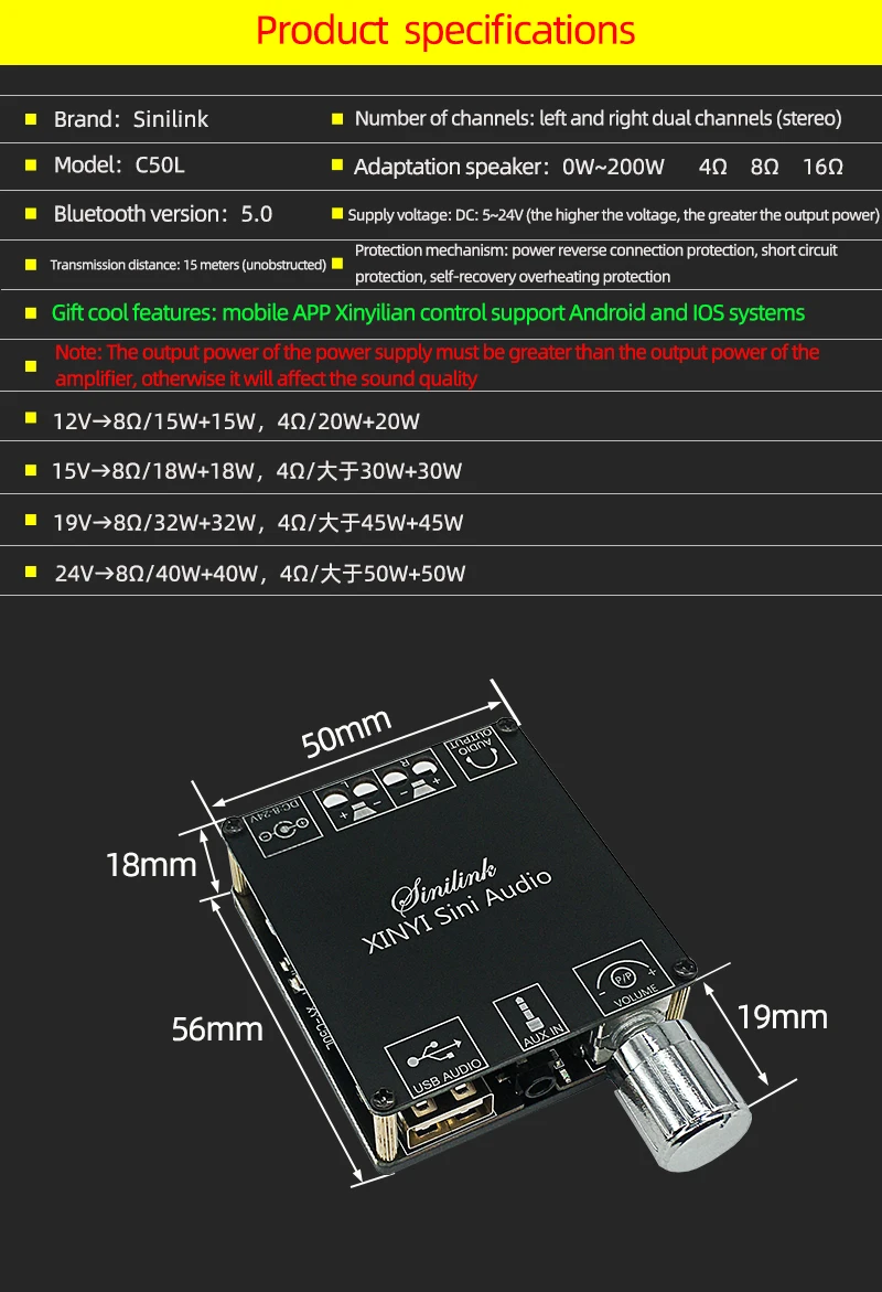 Amplificador DE POTENCIA Digital TPA3116, módulo de placa estéreo 50Wx2, Amplificador XY-C50L, compatible con Bluetooth 5,0, XY-C50H