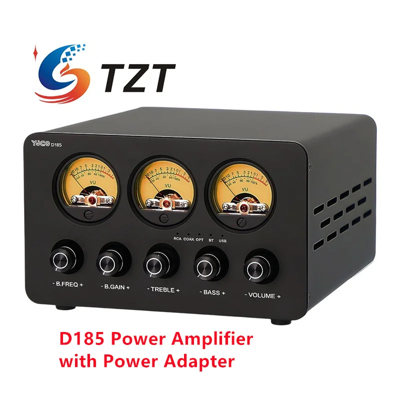 Amplificador de potencia digital de 2.1 canales TZT D185, amplificador de audio Bluetooth 5.4, decodificación ES9038Q2M con tres medidores VU, sin/con adaptador de corriente