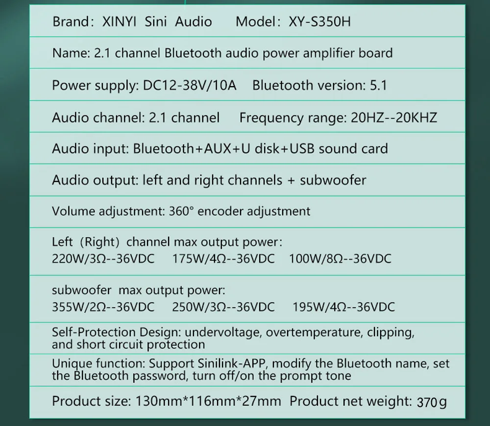 Nombre del producto: Bluetooth TPA3251D2 AMP