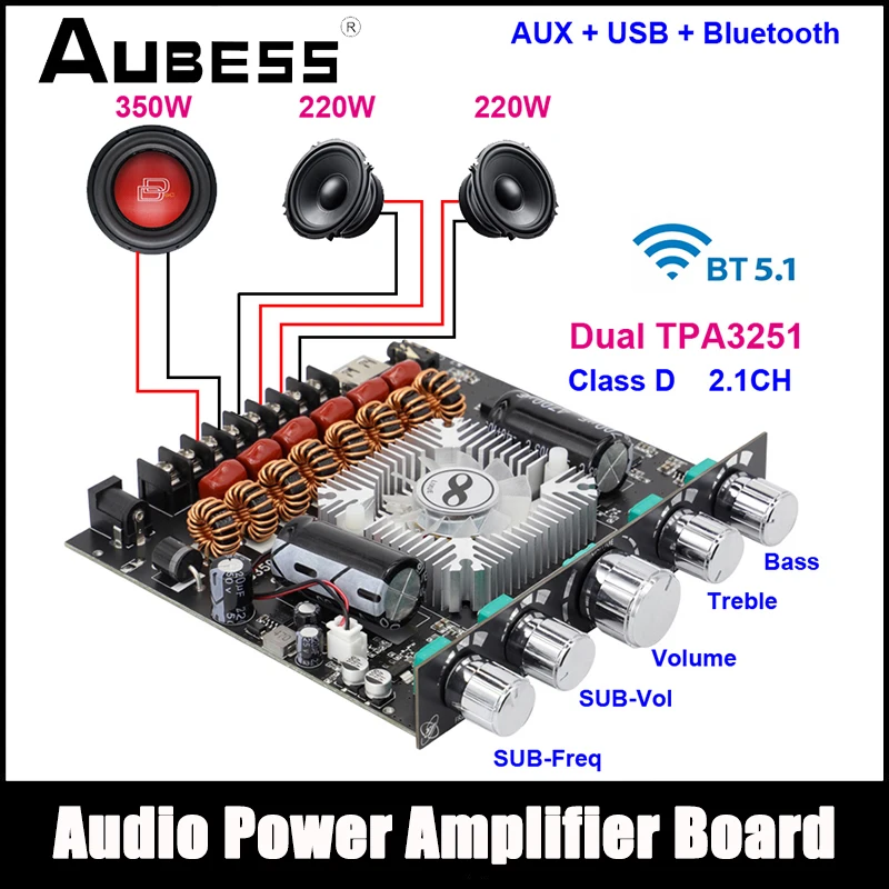 Comprar AMPLIFICADOR DE POTENCIA Digital XY-S350H TPA3251, placa amplificadora de potencia de Audio de 2,1 canales, Bluetooth 5,1, 220W x 2 + 350W D2