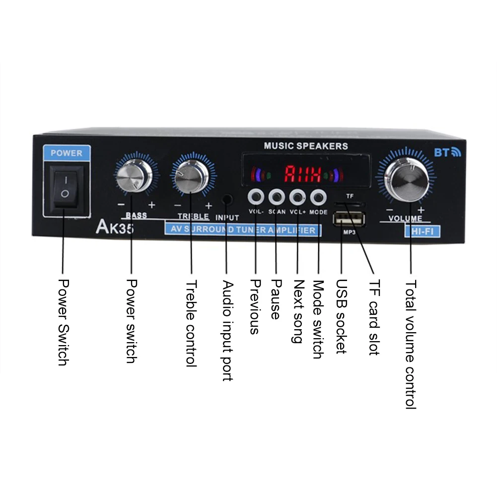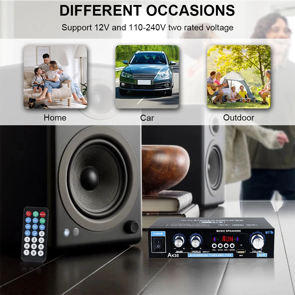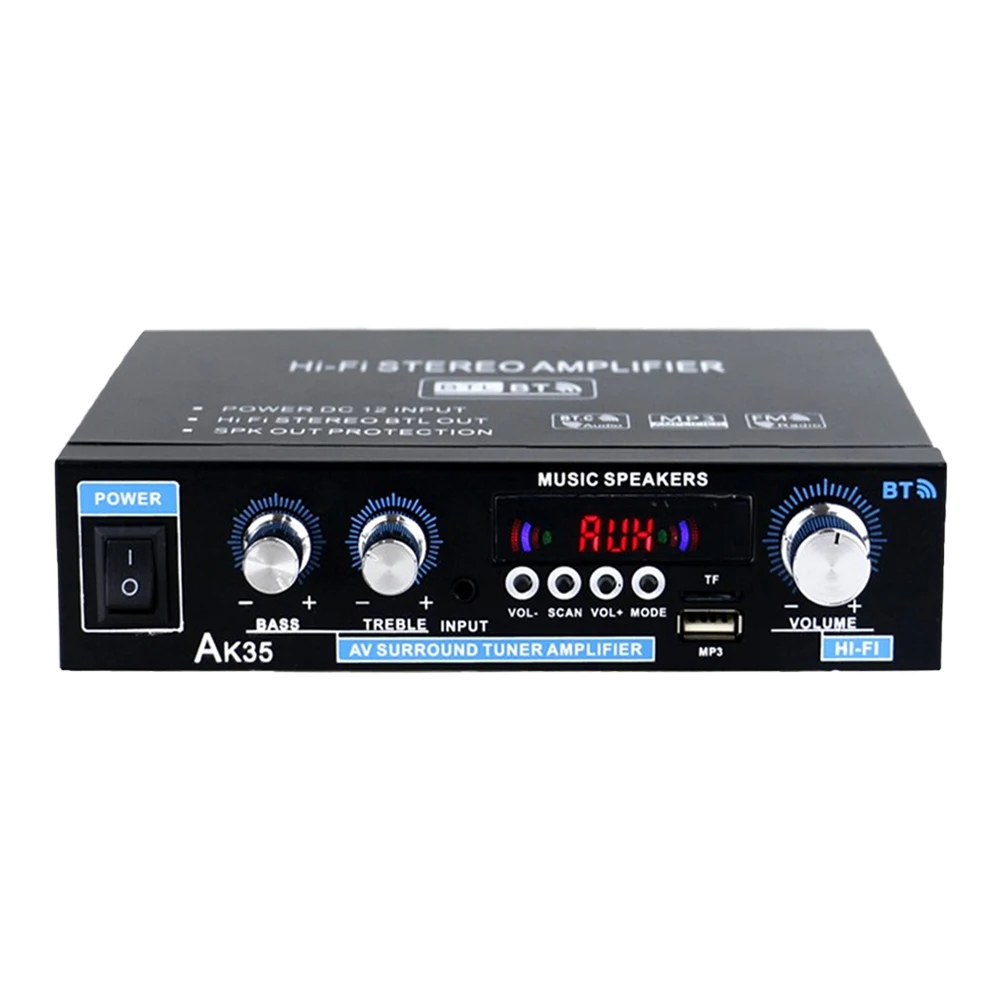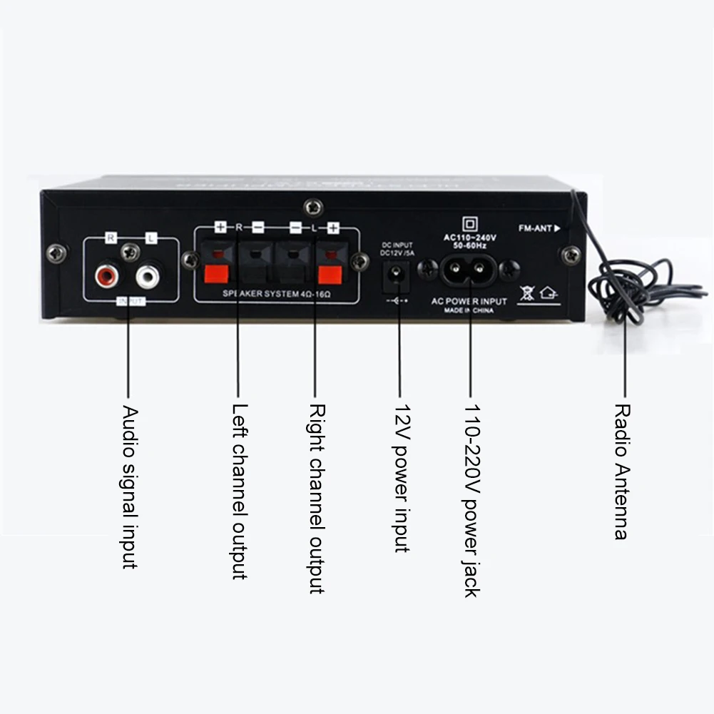 Amplificador de potencia estéreo HiFi compatible con Bluetooth, 12V/110-240V, amplificador de potencia para el hogar, amplificador de Audio estéreo para fiesta de Karaoke en casa