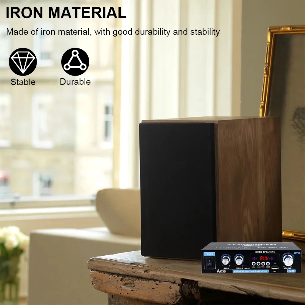 4.Compatible con Bluetooth y conectividad USB:Conecte sus dispositivos sin problemas a través de Bluetooth o USB a este amplificador de audio estéreo para una experiencia de audio conveniente.Disfrute de la facilidad de la transmisión inalámbrica o conecte su USB para reproducir directamente, mejorando sus opciones de escucha de música.