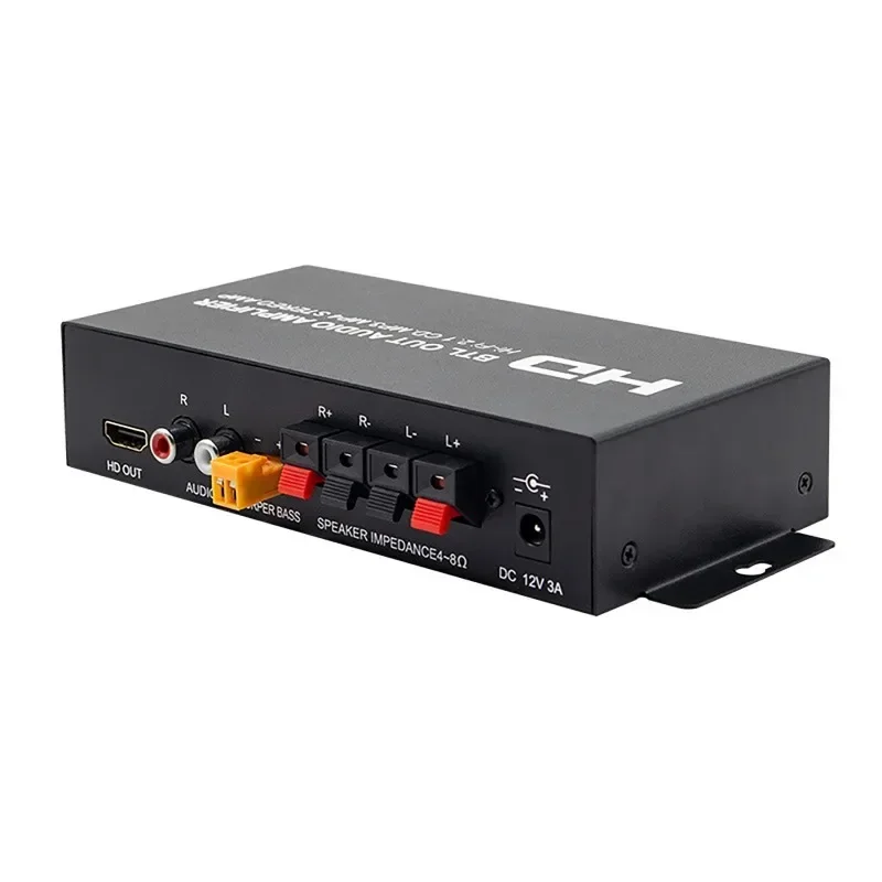 Puerto de entrada: 2 x Audio RCA; 1 x AUX; 1 x interfaz multimedia de alta definición Puerto de salida: 1 x interfaz multimedia de alta definición; 1 x conector de sonido ultrabajo; 1 x canal izquierdo; 1 x canal derecho
