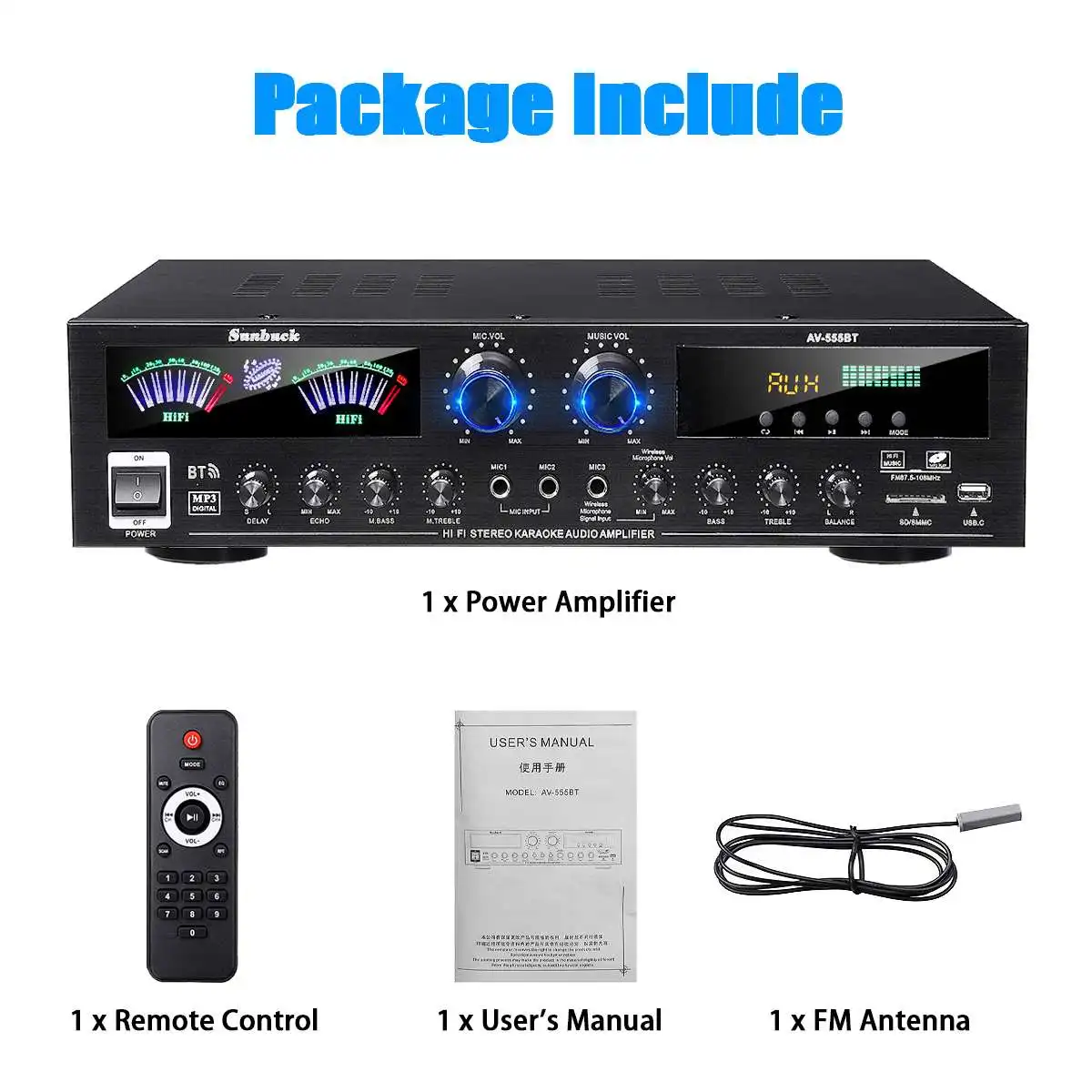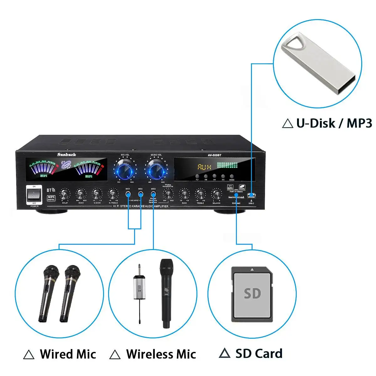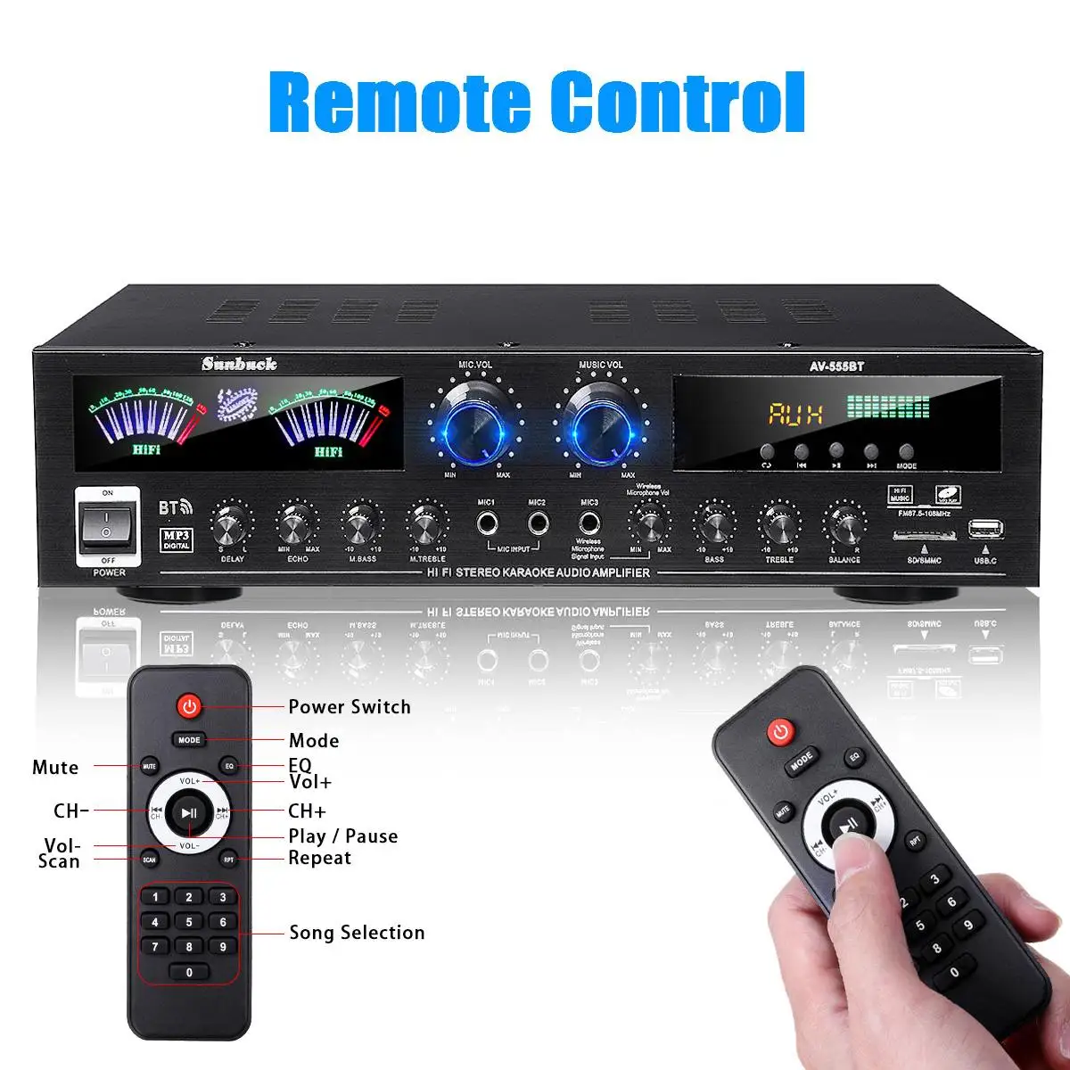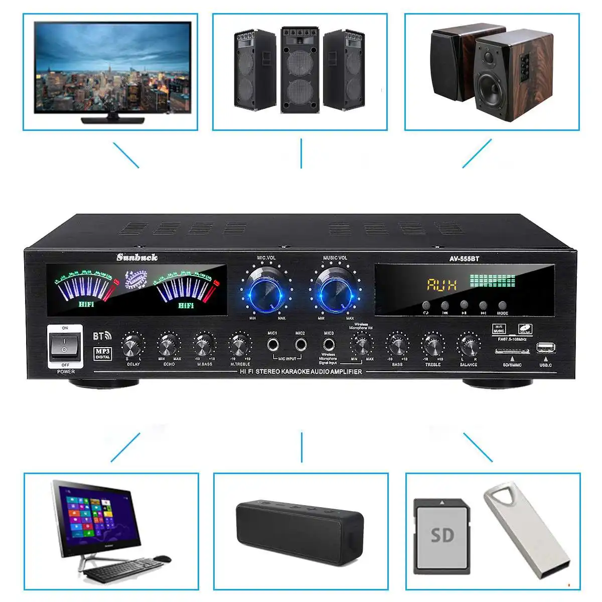 Comprar Amplificador de Potencia HiFi Estéreo, Altavoz de Sonido Digital 5.0 con Bluetooth, 4000 W, 5 Canales, 12V, BASS, Reproductor de Música de Bajos, FM, USB, SD, 3Mic