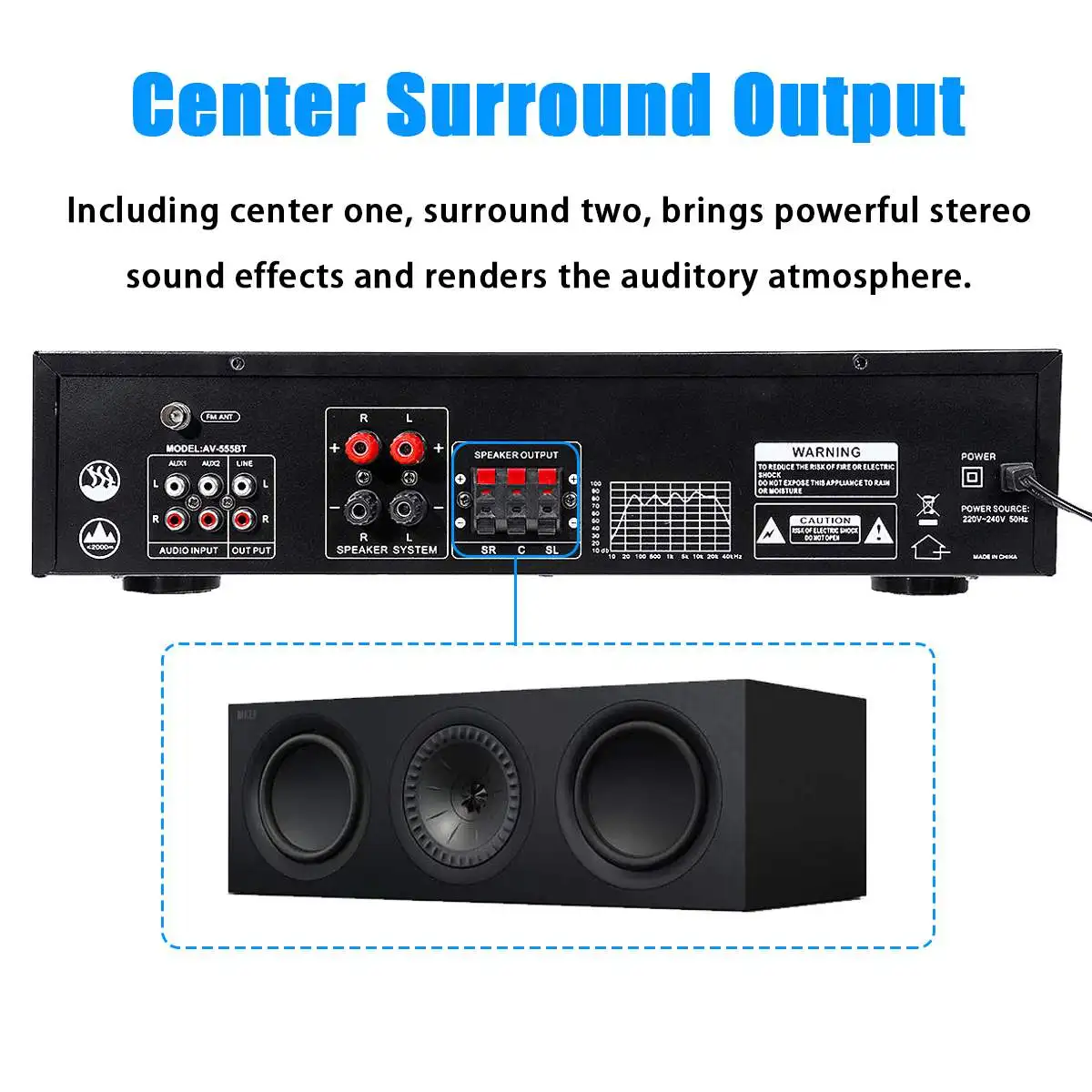 -Salida de 5 canales, puede conectar 2 pares de altavoces de menos de 10 pulgadas.