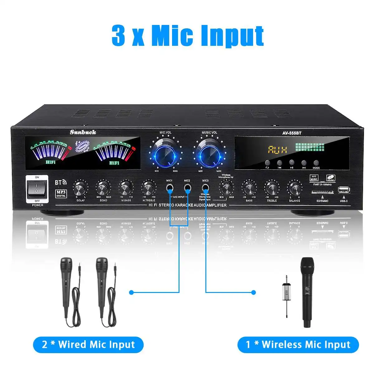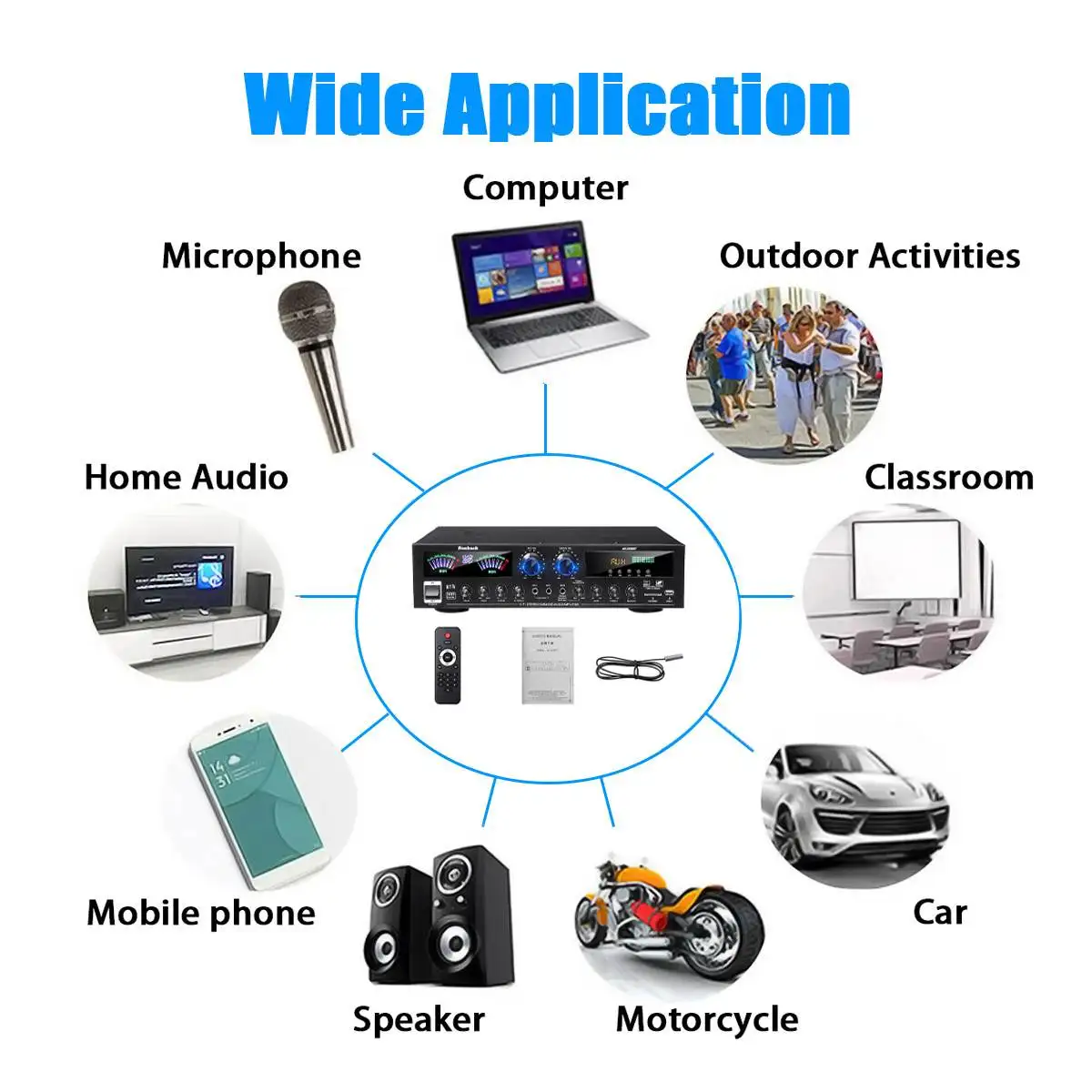 Comprar Amplificador de Potencia HiFi Estéreo, Altavoz de Sonido Digital 5.0 con Bluetooth, 4000 W, 5 Canales, 12V, BASS, Reproductor de Música de Bajos, FM, USB, SD, 3Mic