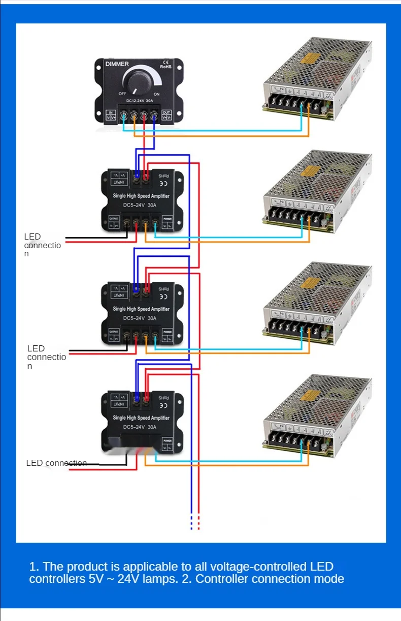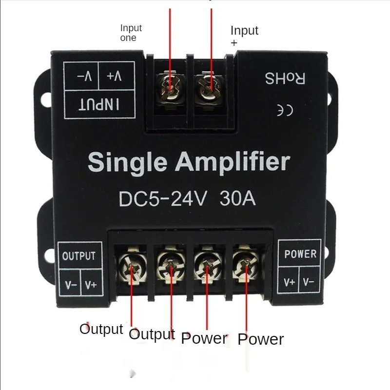 Comprar AMPLIFICADOR DE señal Led DC 5V-12V 30A, atenuador, recibe señal monocromática de un atenuador LED y se envía A otro conjunto de fuentes LED