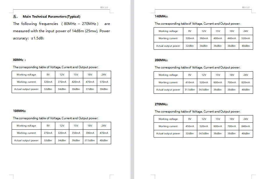 1, para garantizar que los indicadores técnicos estén relativamente equilibrados en toda la banda ancha de 80MHz - 930MHz, algunos puntos de frecuencia no son los mejores indicadores técnicos.