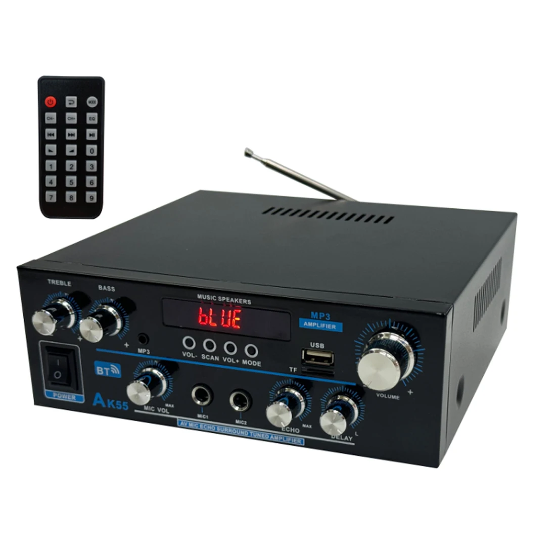 ● Interfaz SD/USB, 2 entradas de micrófono, Con control remoto.