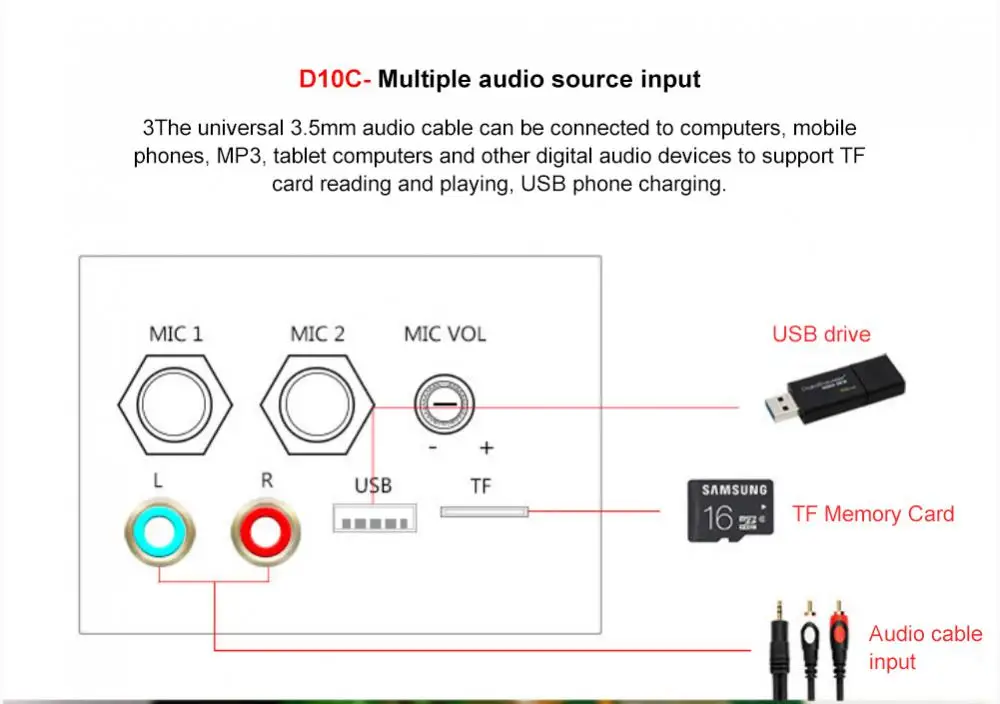 2. Soporte para leer canciones MP3 en tarjeta TF y disco U;