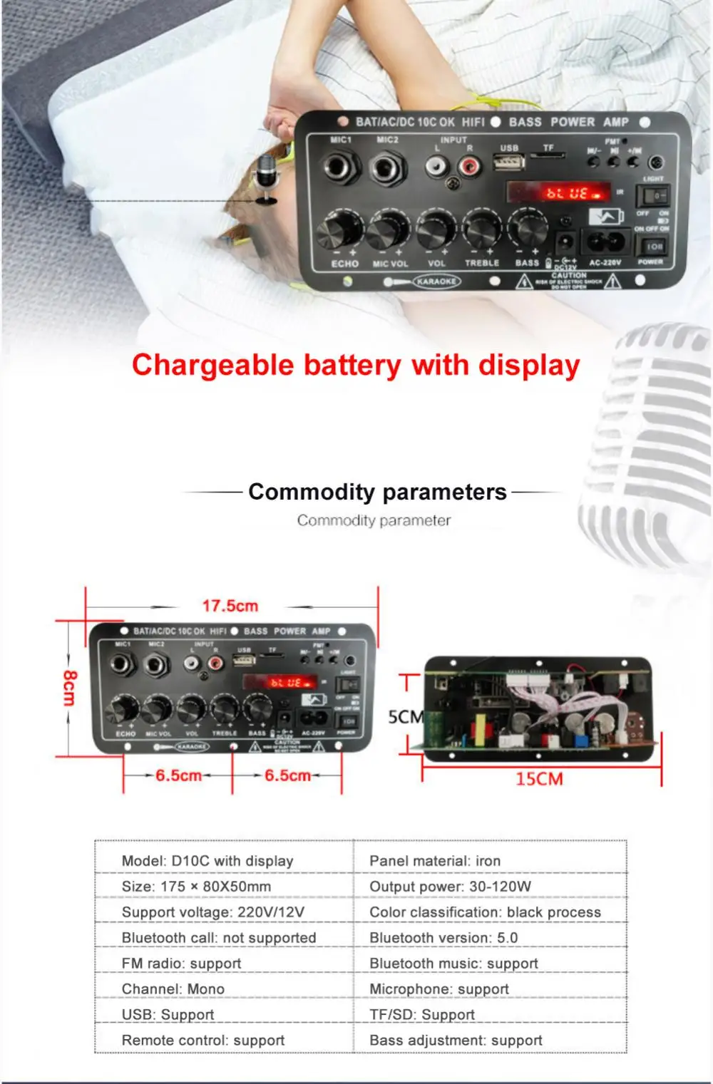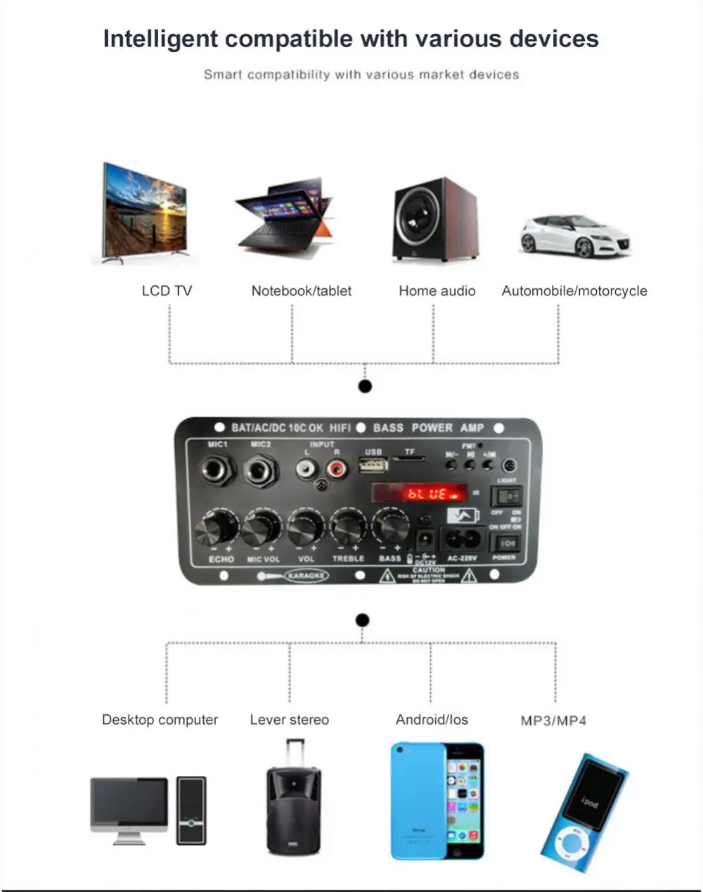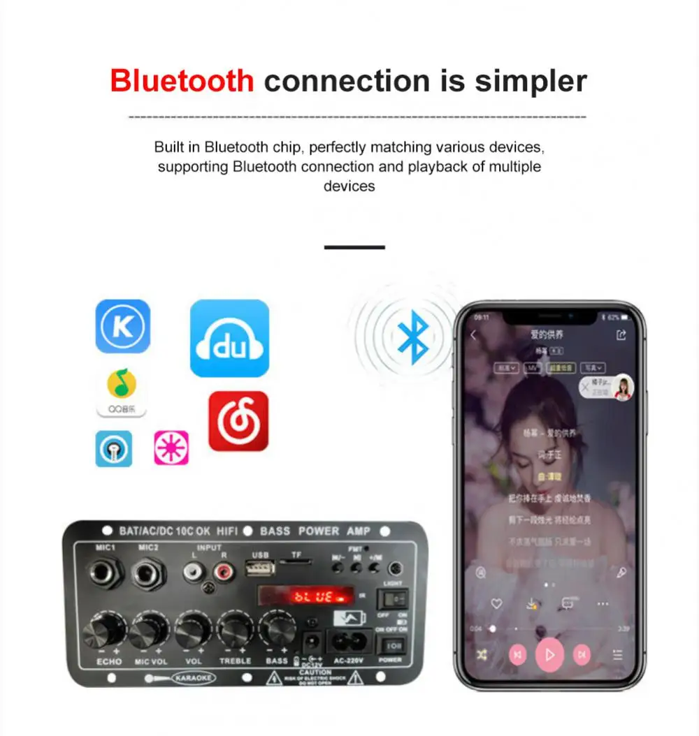 Comprar AMPLIFICADOR DE Subwoofer para Karaoke, placa amplificadora estéreo Digital 200, 220 W, 5,0 V, 12V, 24V, micrófono Dual