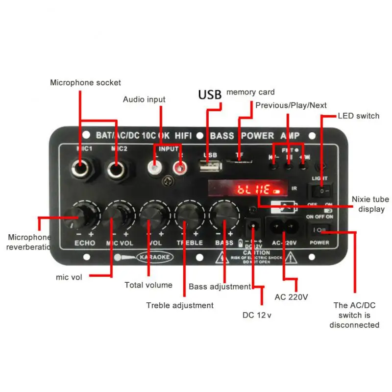 Comprar AMPLIFICADOR DE Subwoofer para Karaoke, placa amplificadora estéreo Digital 200, 220 W, 5,0 V, 12V, 24V, micrófono Dual