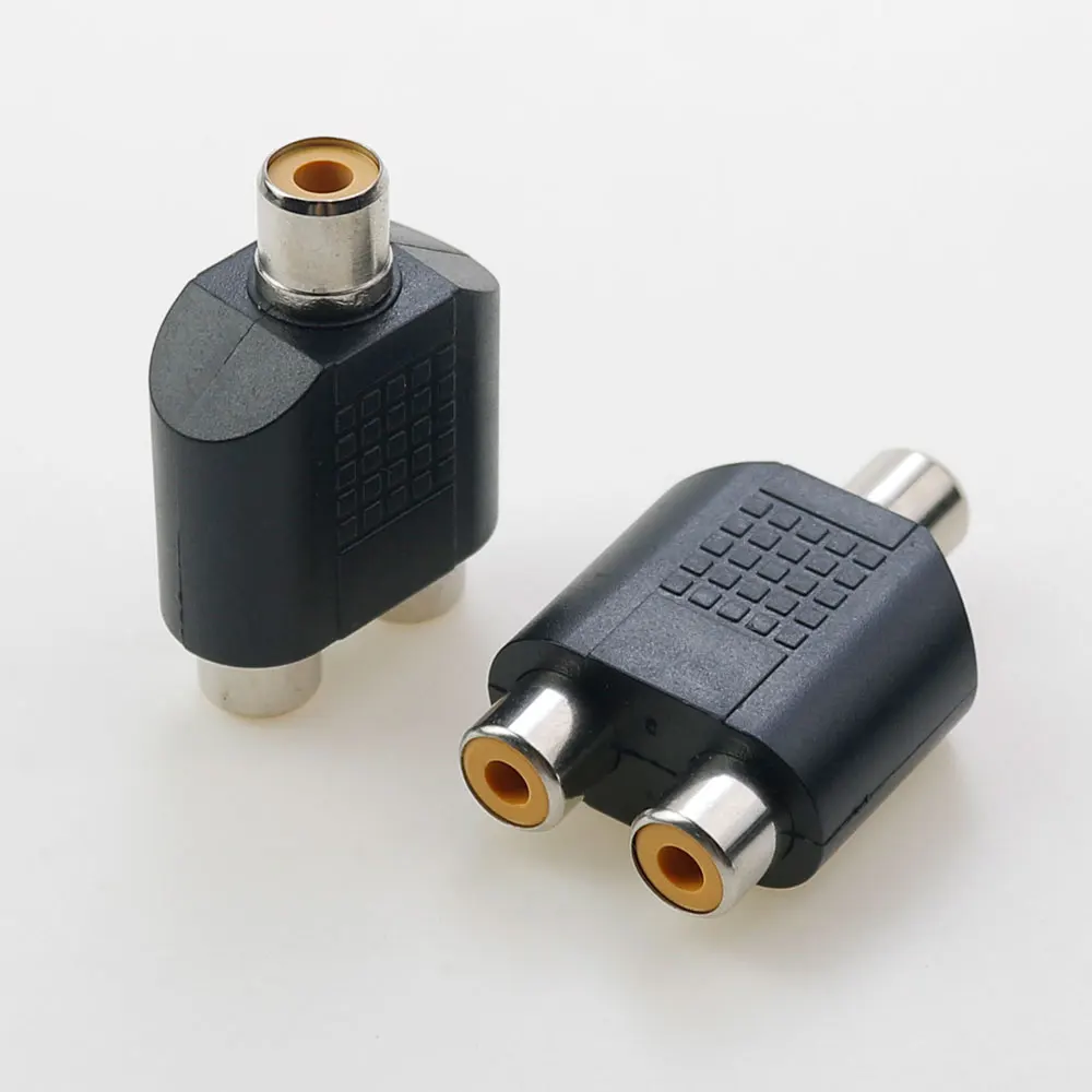 1 RCA cabeza de loto hembra a dos RCA hembra amplificador de TV DVD altavoz adaptador de enchufe de audio Y divisor