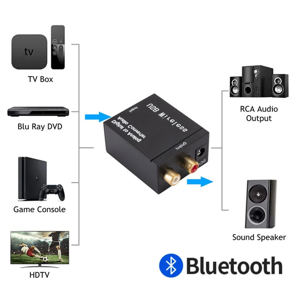 El convertidor digital a analógico y los convertidores Bluetooth convierten señales de Audio digitales ópticas o coaxiales y receptores Bluetooth en señales analógicas estéreo. El amplificador de potencia de Audio ayuda a los usuarios a conectar señales de audio digitales de alta calidad a canales de audio normales. Este producto es adecuado para cine en casa, enseñanza, estructura de entrenamiento, sala de conferencias, tienda de electrodomésticos y otros lugares de uso.