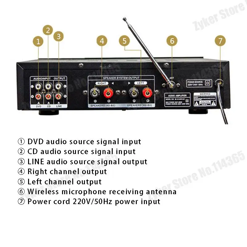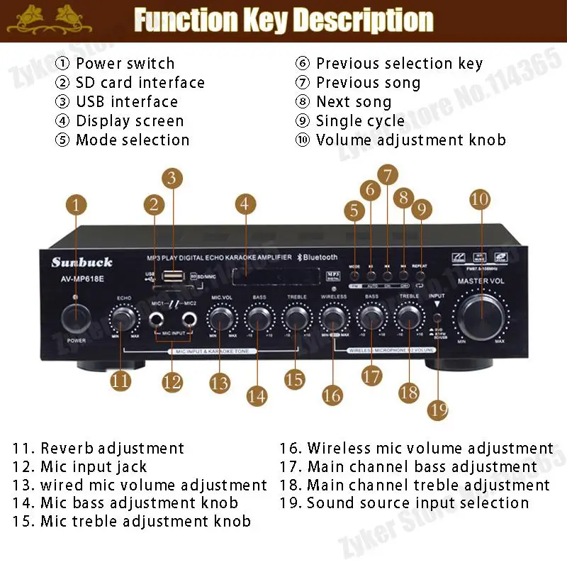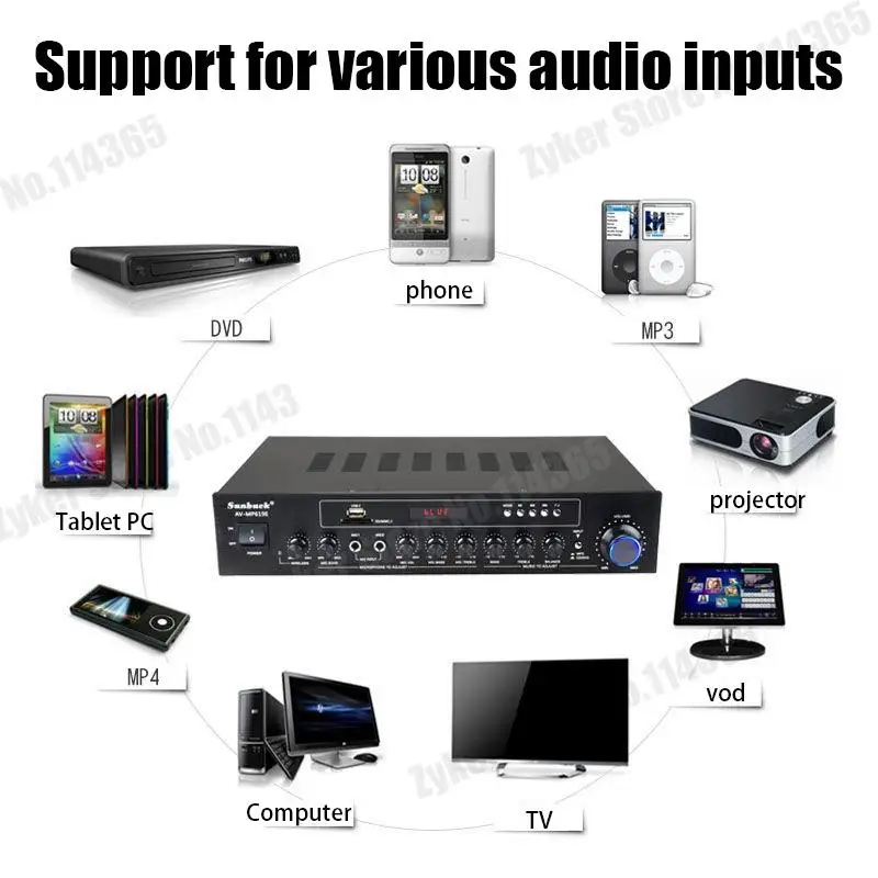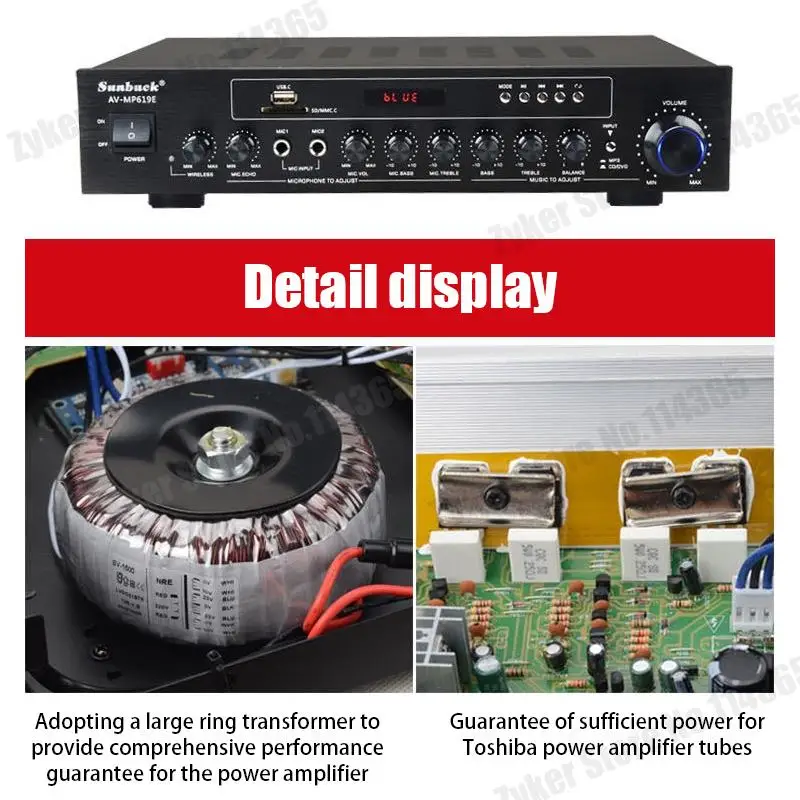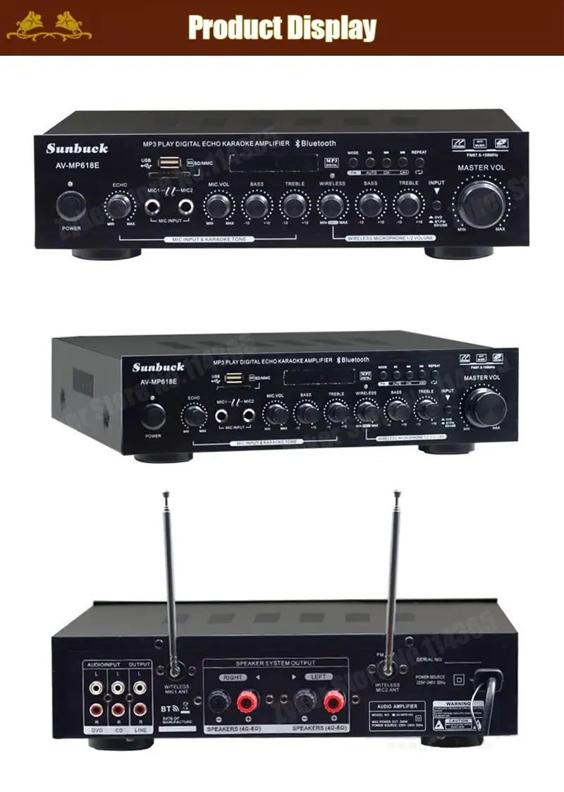 Nota: 1. Amplificador de la marca SUNBUCK,Enchufe estadounidenseEs110V; Enchufe europeoEs220-240V...