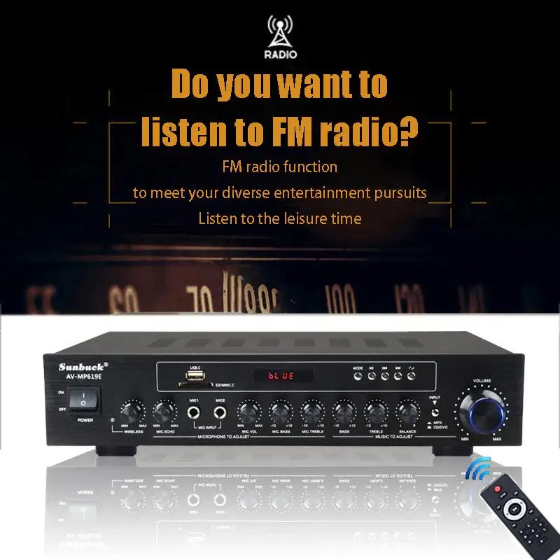Comprar Amplificadores de alta potencia MP618E/619E, 2,1 canales, 3000W, Hifi, Bluetooth, amplificación de sonido de Audio para el hogar, soporte SD, USB, FM, micrófono, Control remoto