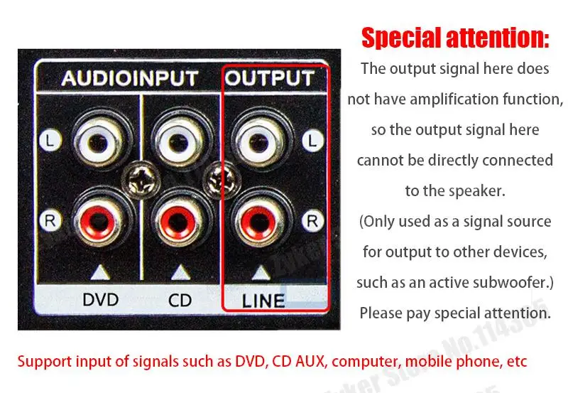 Seleccione la especificación adecuada de acuerdo con el voltaje de su país antes de realizar el pedido para evitar quemar el amplificador.