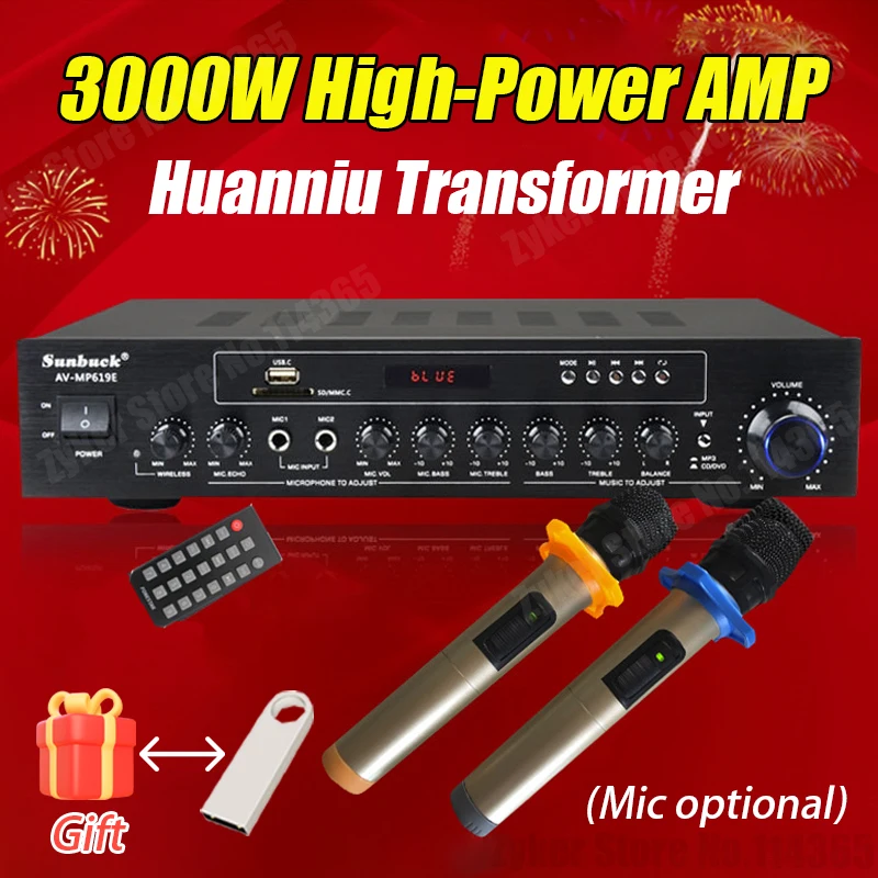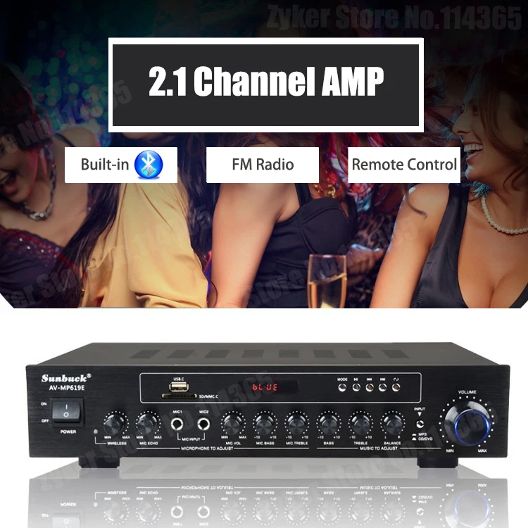Comprar Amplificadores de alta potencia MP618E/619E, 2,1 canales, 3000W, Hifi, Bluetooth, amplificación de sonido de Audio para el hogar, soporte SD, USB, FM, micrófono, Control remoto