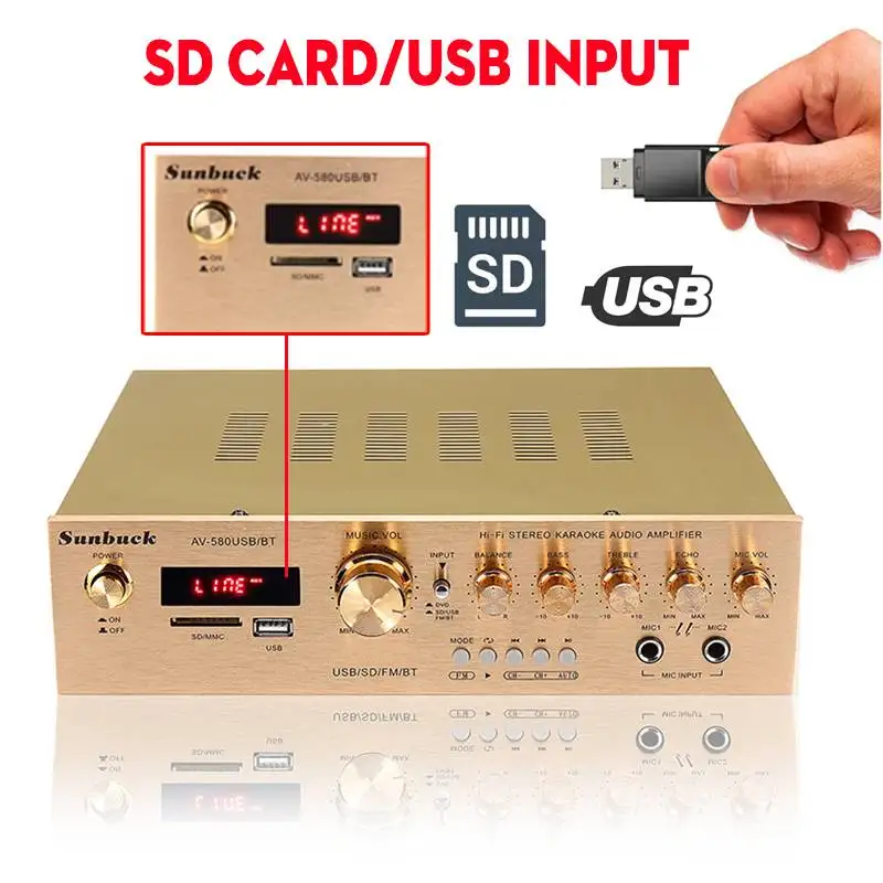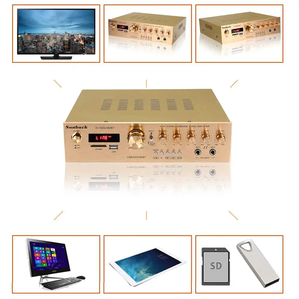 1. Este amplificador es un amplificador con sonido surround multifuncional que es adecuado para Hi-Fi, cine en casa o para eventos pequeños y karaoke.