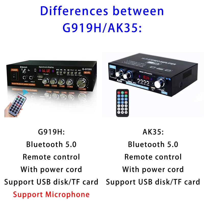 Note:The link contains two different models of Power Amplifiers:AK35 and G919H . Please check before placing an order, thank you !!!