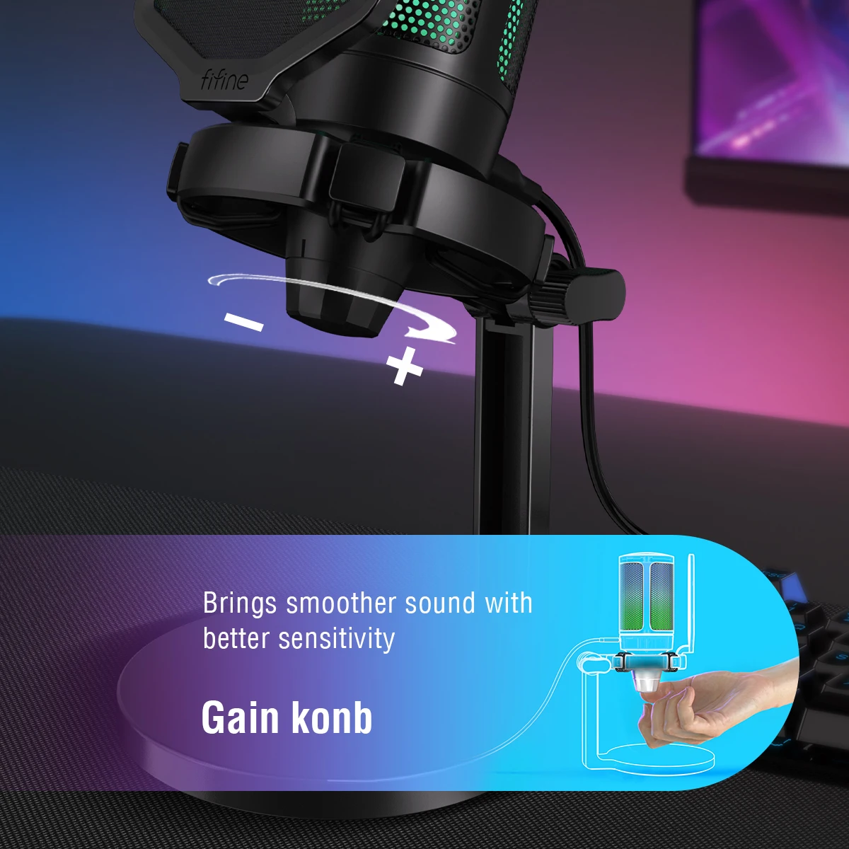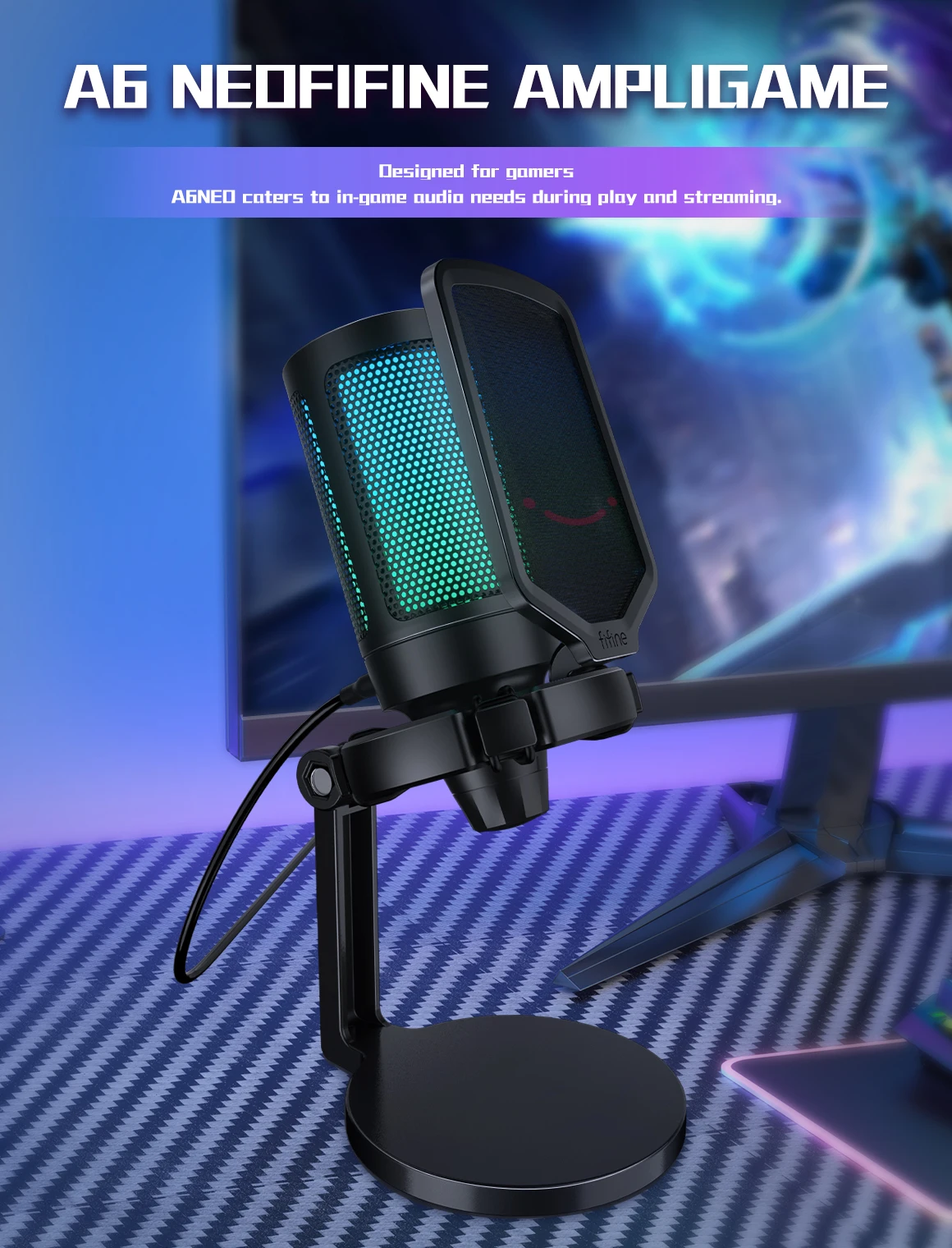 Comprar AmpliGame by FIFINE micrófono USB para juegos con RGB, perilla de ganancia, silencioso táctil, micrófono condensador de Podcast de transmisión para PC, interruptor, PS5-A6NEO