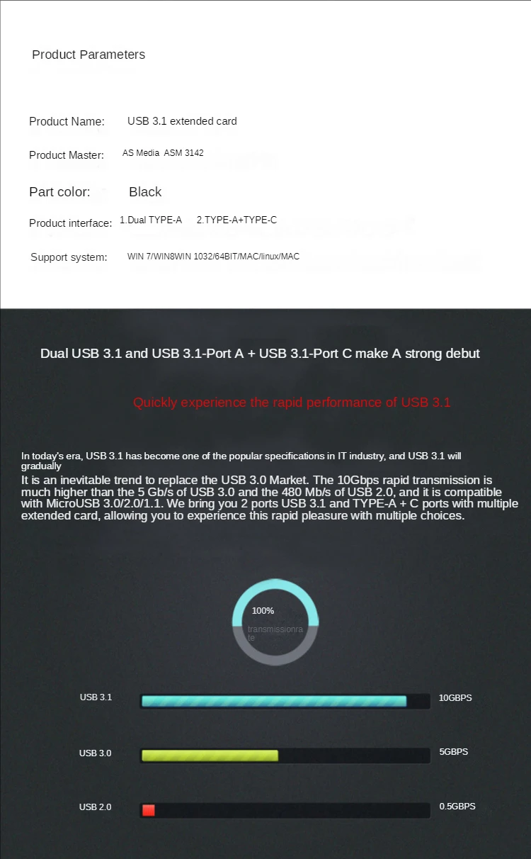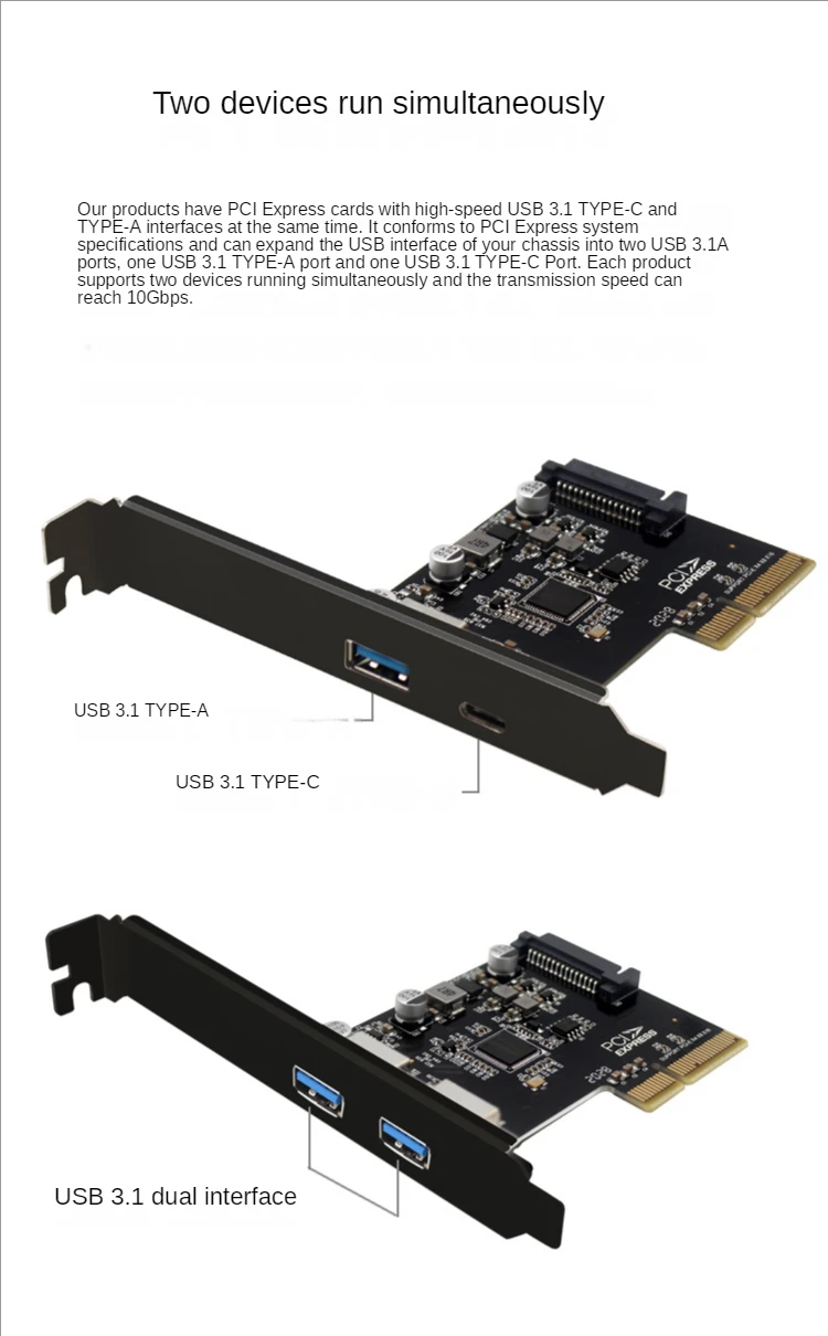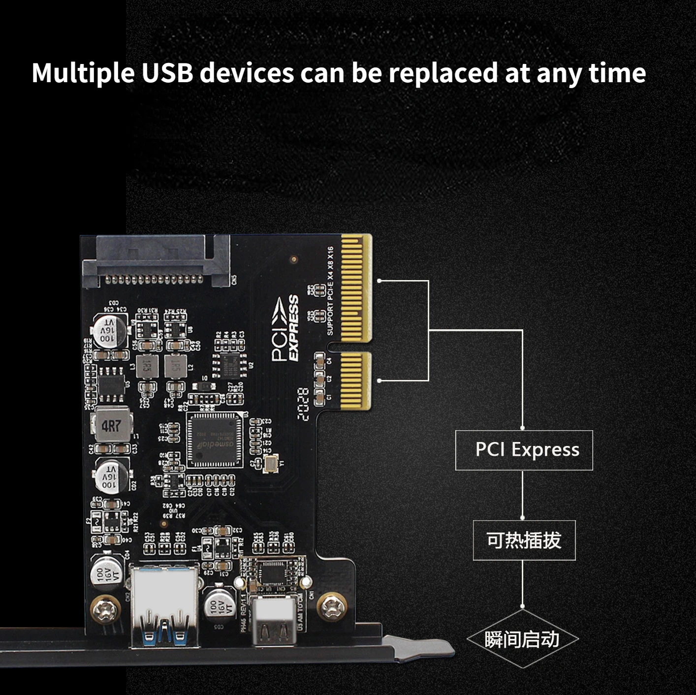 Comprar Añadir en tarjetas de escritorio estándar PCIE3.0 A USB3.1, tarjetas elevadoras de 10gbps, velocidad completa tipo A + tipo C, PCI Express A tarjeta adaptadora USB 3,1