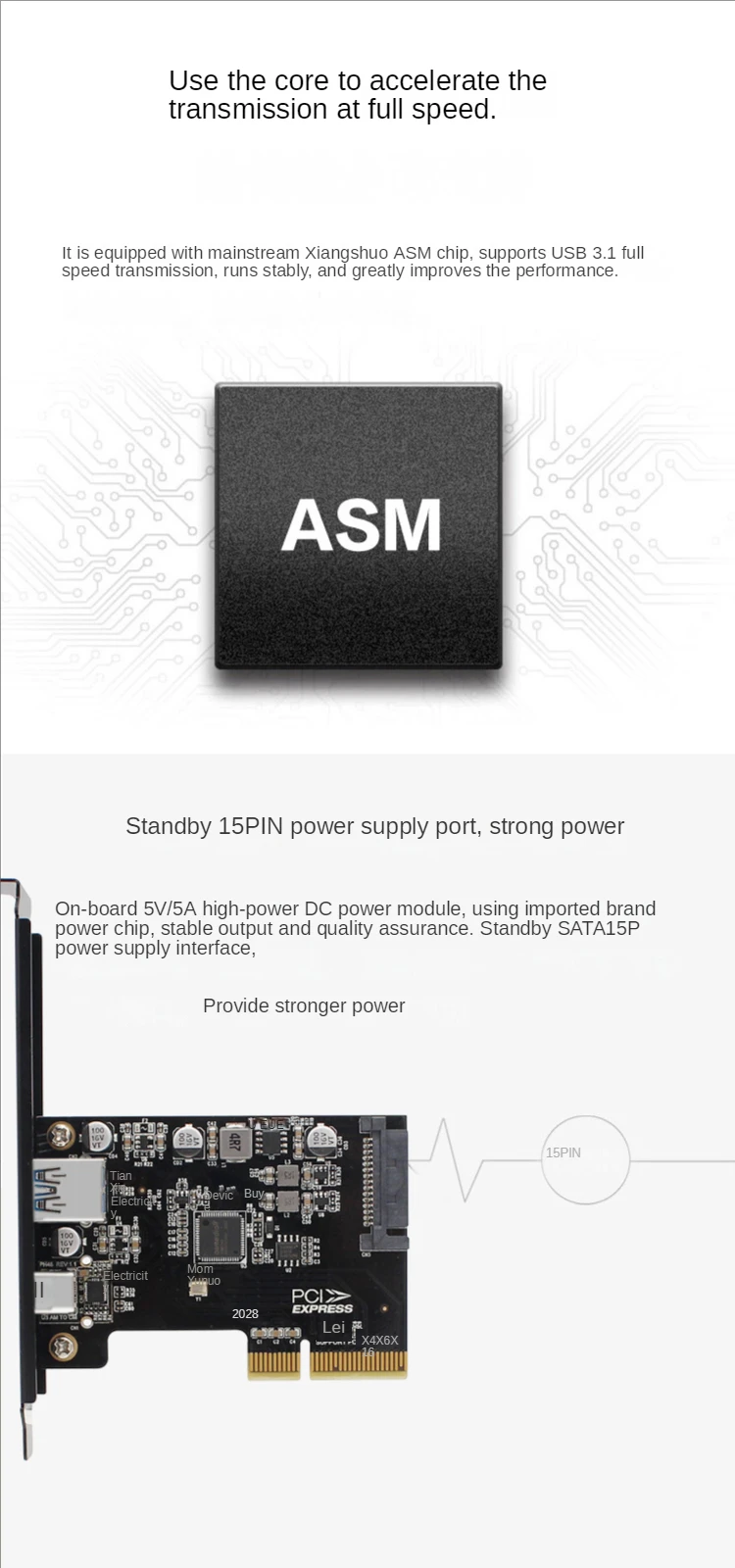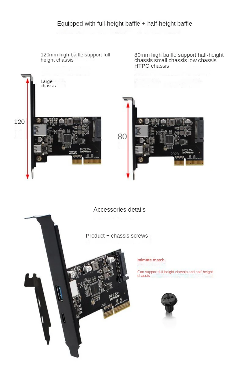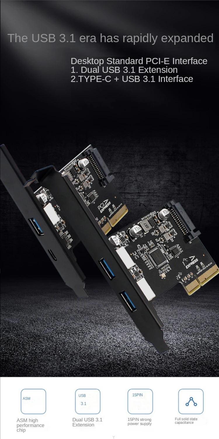 Añadir en tarjetas de escritorio estándar PCIE3.0 A USB3.1, tarjetas elevadoras de 10gbps, velocidad completa tipo A + tipo C, PCI Express A tarjeta adaptadora USB 3,1