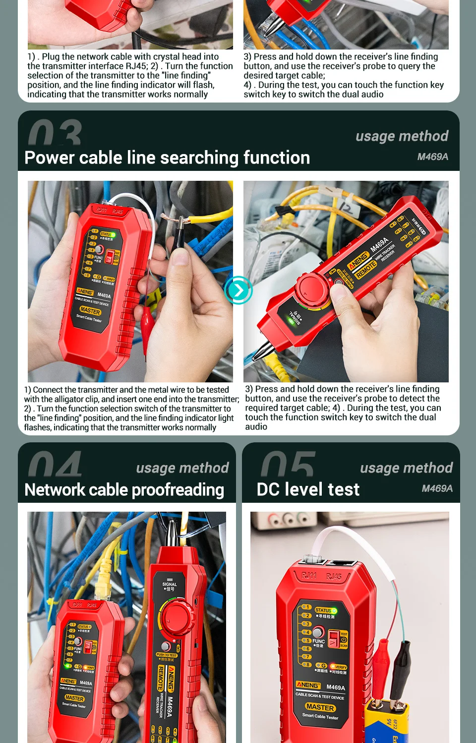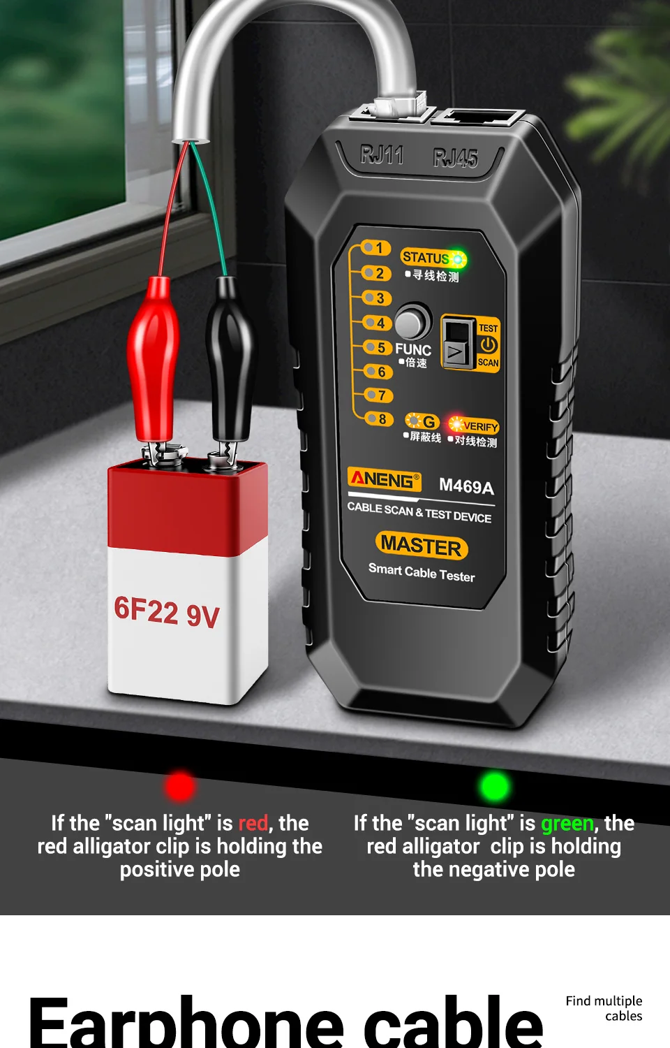 Analizador de cables de red ANENG M469A RJ45 RJ11, rastreador de cables telefónicos, receptor, buscador de líneas, probador, herramientas eléctricas de reparación