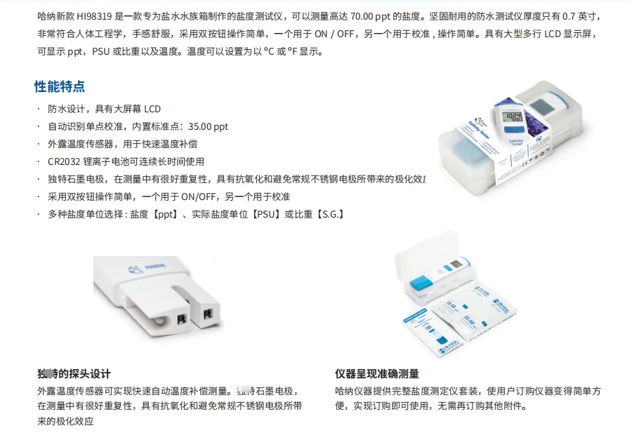 Anfitrión, sensor de temperatura incorporado y electrodo de grafito, solución especial personalizada de calibración de salinidad, especificación: 20 ml × 4.Manual de usuario tanto en chino como en inglés, estuche de transporte de instrumentos especial personalizado