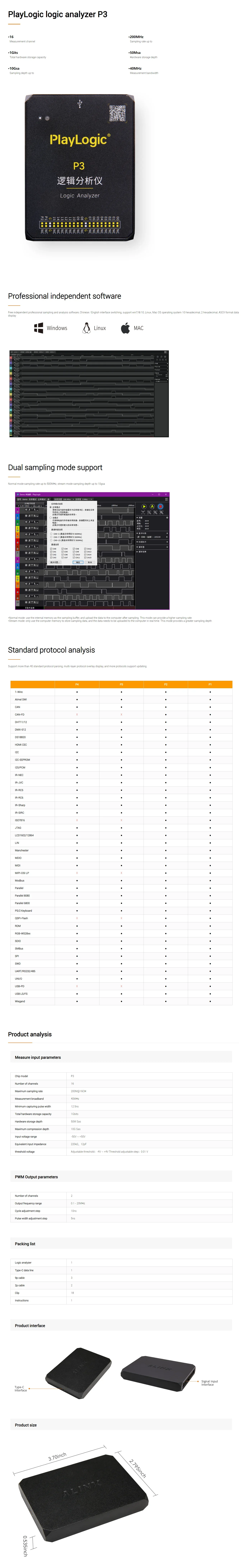 Analizador lógico PlayLogic ALINX P3 200M Velocidad de muestreo 16 canalesAlinx