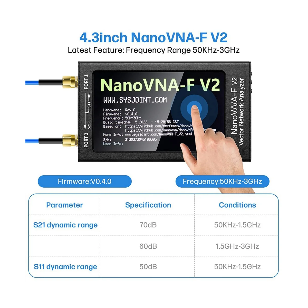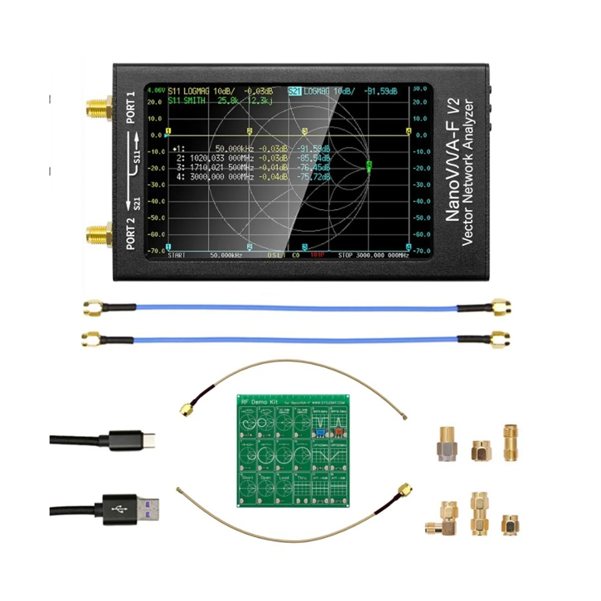 Comprar Analizador de red vectorial para nanovna-f V2, Kit de demostración RF, 50KHz-3GHz, Analizador de antena HF, VHF, UHF, VNA, 4,3 pulgadas, 5000MAh