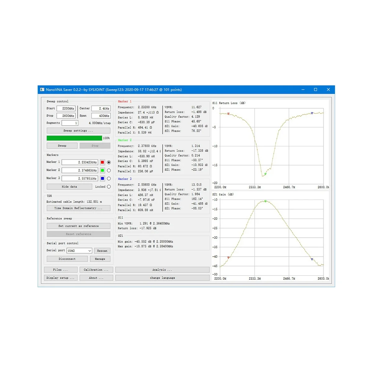 El For NanoVNA-F V2 se ha actualizado sobre la base de NanoVNA-F al último Firmware 0.4.0, y la página de operación es compatible con Nanovna-F. Puede medir el parámetro S, relación de onda estacionaria de voltaje SWR, mapa de fase, retardo de grupo, gráfico de Smith, DELAY, POLAR, LINEAL y así sucesivamente El rango de medición para NanoVNA-F V2 es 50KHz-3GHz, que es más grande que la versión anterior (la anterior es 10KHz-1,5 GHz). El método TX/RX puede medir los parámetros completos S11 y S21, rangos dinámicos S21: 70dB (1,5 GHz), 60dB (3GHz); S11 rangos dinámicos: 50dB (1,5 GHz), 40dB (3GHz) El analizador Anterna utiliza cajas de aleación de aluminio, que son resistentes y duraderos y pueden proteger eficazmente las interferencias electromagnéticas para garantizar la precisión de la medición. La interfaz de radiofrecuencia es SMA, que es conveniente para conectar varios tipos de medición usando software de PC para NanoVNA Saver, puede conectarse a NanoVNA y extraer los datos para su visualización en un ordenador, Y para guardar en archivos Touchstone. Rendimiento del producto: 1. Rango de frecuencia de medición: 50KHz-3000MHz; 2. Potencia de salida RF: -9dbm (error dentro de 1GHz: más o menos 1db); 3. Precisión de frecuencia: menos de 0,5 ppm 4. S21 rango dinámico: 70dB (1,5 GHz), 60dB (3GHz) 5. S11 rango dinámico: 50dB (1,5 GHz), 40dB (3GHz) Pérdida de retorno del puerto 6,2: 20dB TYP (1,5 GHz), 13dB min (3GHz) Pantalla LCD IPS de 7,4 pulgadas, IPS TFT (800x480) ángulo de visión cercano a 180 °, uso a largo plazo sin dañar los ojos; 8. Usando una batería de litio de gran capacidad de 5000mAh, la duración de la batería puede alcanzar las 7 horas; Diferentes lotes pueden dar como resultado diferentes aspectos del producto, texto impreso y colores, lo que no afecta el uso Color: negro Material:Metal Contenido del paquete: 1 x Kit de analizador de red vectorial Solo el contenido del paquete anterior, otros productos no están incluidos. Nota: El reflejo de la luz y las diferentes pantallas pueden hacer que el color del elemento en la imagen sea un poco diferente del real. El error de medición permitido es +/- 1-3cm.
