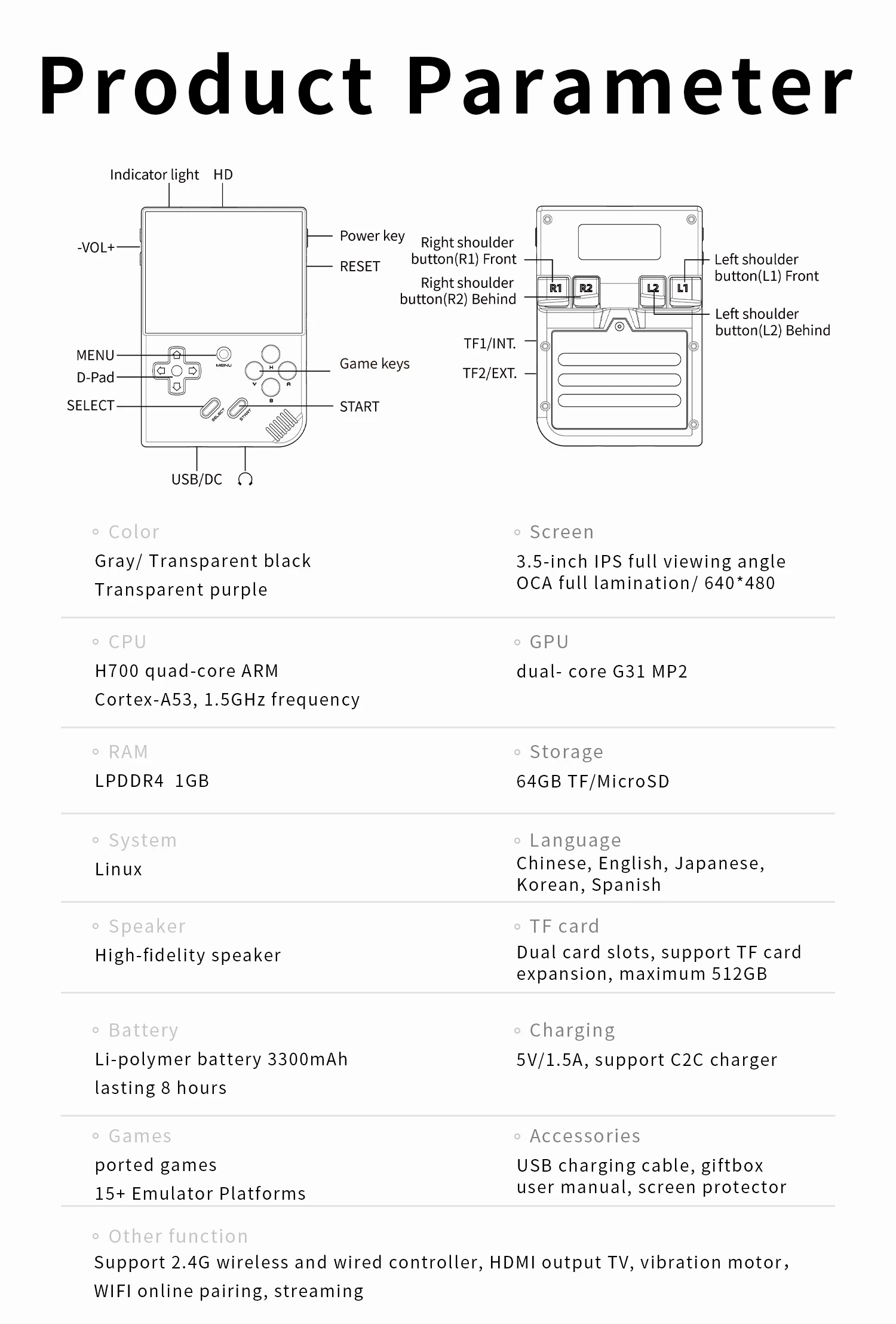 Comprar ANBERNIC-consola de juegos portátil Retro RG35XX Plus, Chip mejorado, sistema Linux, pantalla IPS de 3,5 pulgadas, tarjeta TF de 64G integrada, 5515 juegos