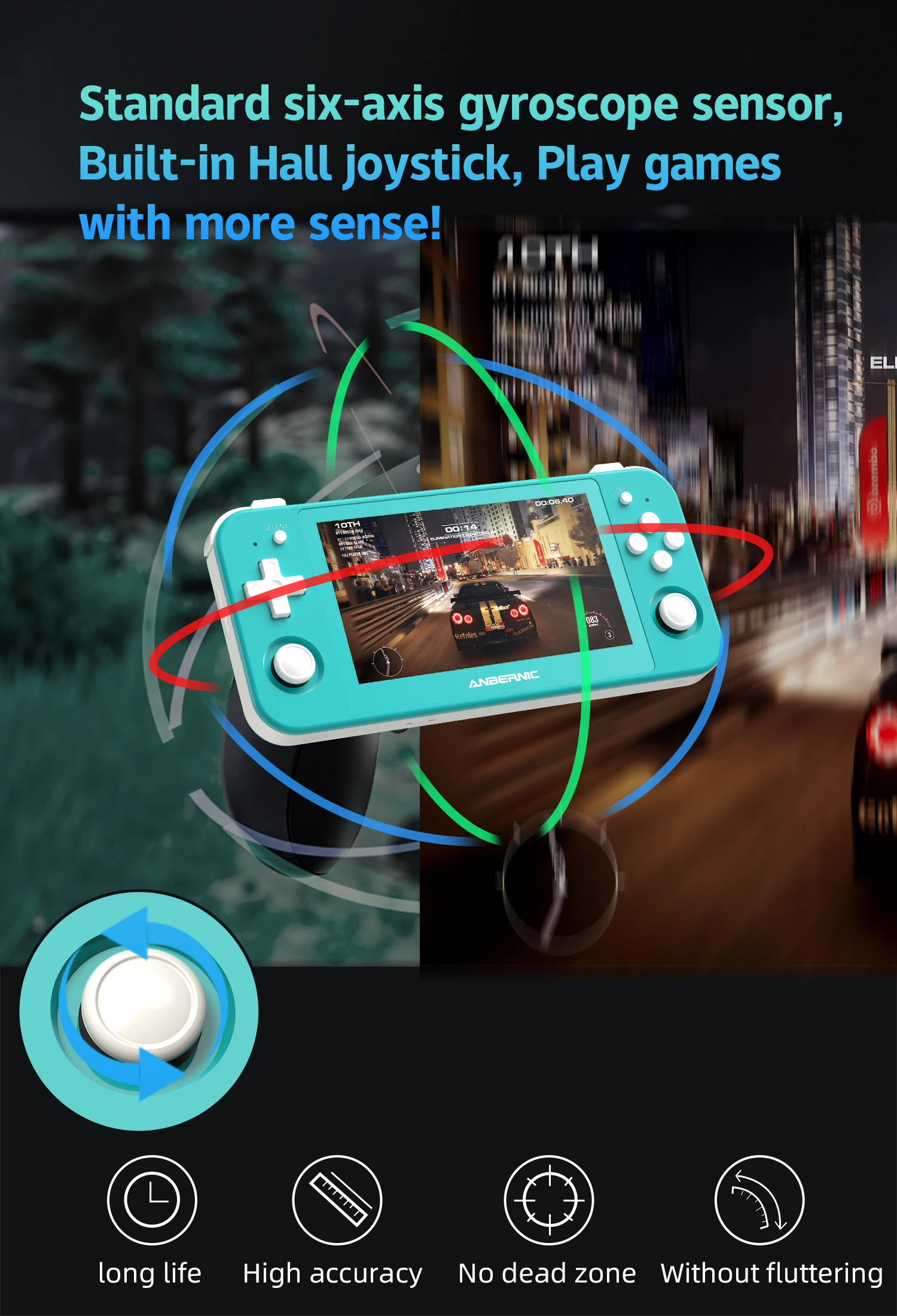 -Other Functions: Built-in Hall joystick, 6 axis Gyroscope Sensor, Support OTA update,support built-in WIFI online fighting, streaming, vibrating motor, support 3.5mm stereo earphones, energy saving setting, display brightness and other functional properties settings
