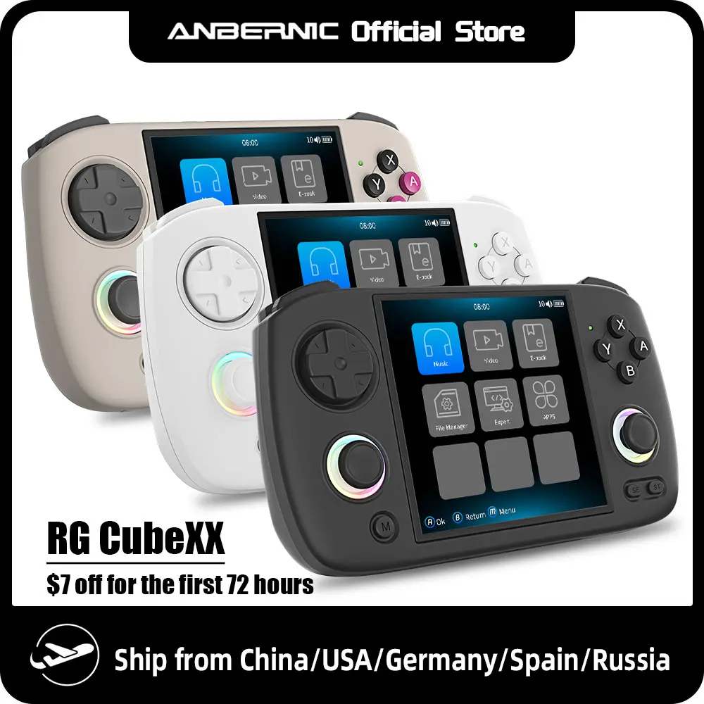 Comprar ANBERNIC-consola de juegos portátil RG CubeXX, pantalla IPS de 3,95 pulgadas, sistema Linux de 64 bits con iluminación de Joystick RGB, compatible con HDMI