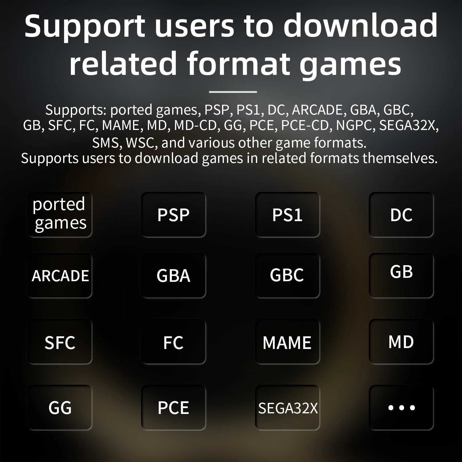 Compatible con: juegos con puerto, PSP, PS1, DC, ARCADE, GBA, GBC, GB, SFC, FC, MAME, MD, MD-CD, GG, PCE, PCE-CD, NGPC, sega32x, SMS, WSC y varios otros formatos de juego.Ayuda a los usuarios a descargar juegos en los siguientes formatos relacionados.