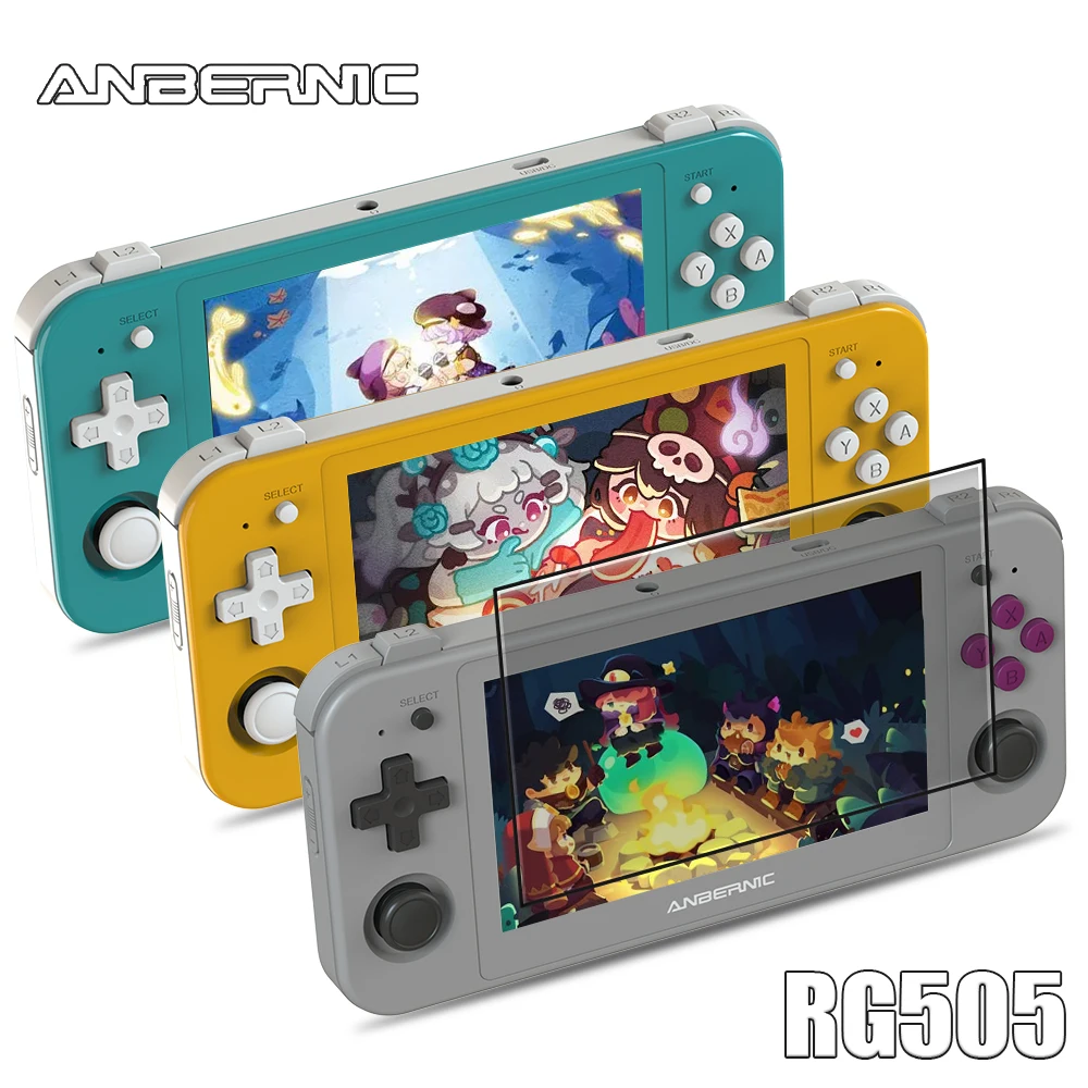Comprar ANBERNIC-consola de juegos portátil RG505, Android 12, Unisoc T618 Tiger, Sensor giroscopio y pantalla táctil OLED de 4,95 pulgadas, juego Android
